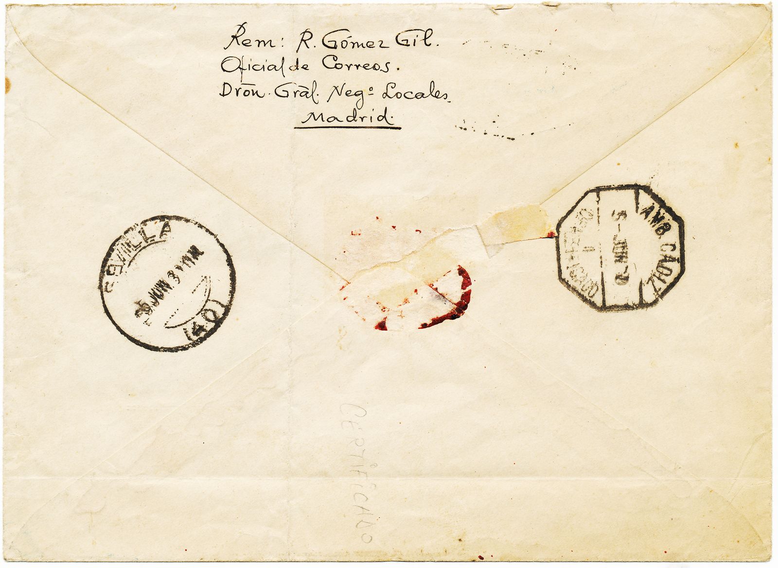 Ambulante. Cádiz. AMB. Cádiz. 1. Certificado. 1930-06-05. Reverso. Baja.jpg