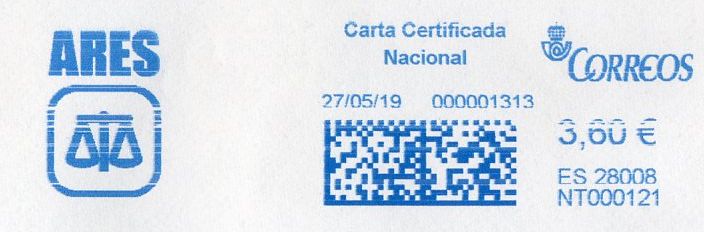 Esta impronta y la anterior corresponden a Industrial Farmacéutica Cantabria, y no sé yo si no serán las misma máquina a la que se la ha cambiado la matricula por haber tenido que modificar el software, como ya pasó en 2012 con las máquinas de Neopost.