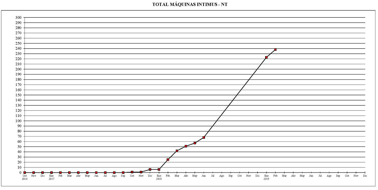 Al igual que en los meses precedentes y completando los datos el mensaje anterior, pongo unos gráficos, como curiosidad, para que se pueda comprobar la evolución del parque de máquinas desde el pasado mes de octubre del año 2016 es cuando empezamos a tener datos oficiales.