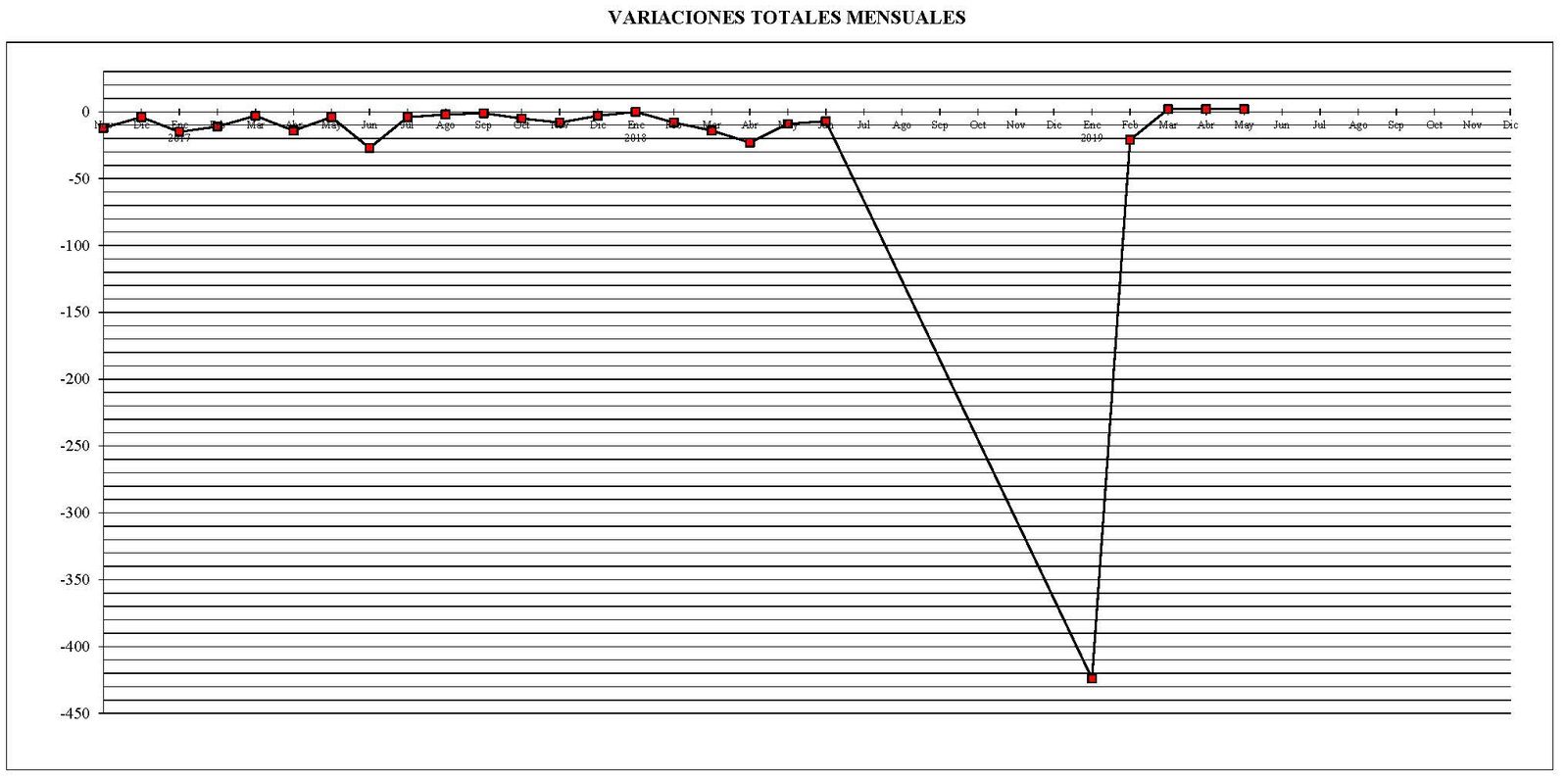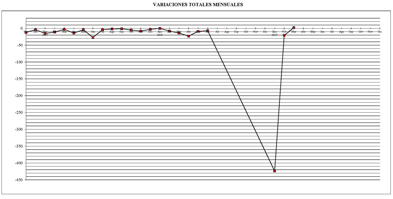 También pongo otro gráfico con las variaciones mensuales en el parque total de máquinas desde el pasado mes de noviembre del año 2016 en comparación con el mes anterior.