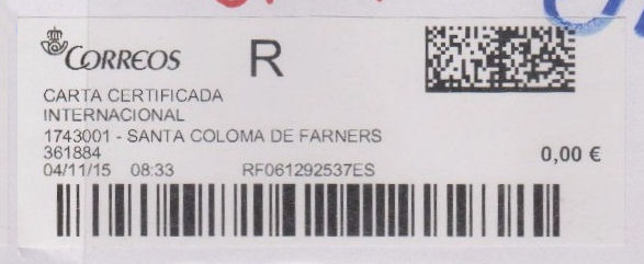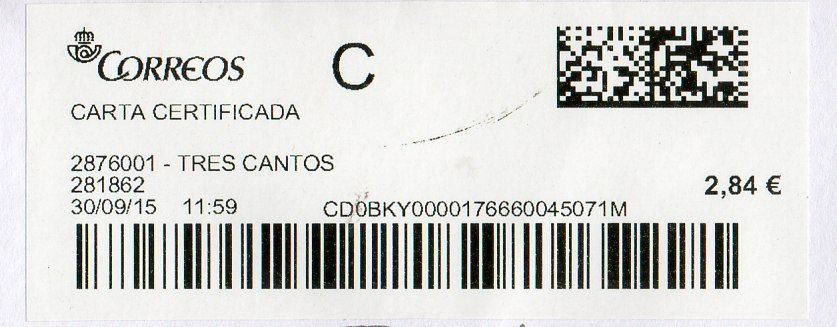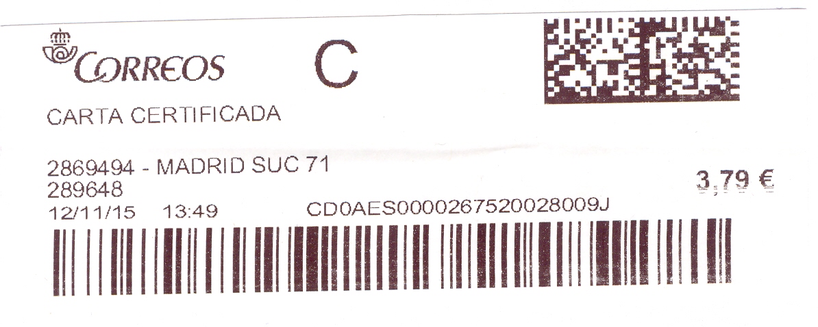 2885894-MADRID SUC 74 / CARTA CERTIFICADA / 12/11/15