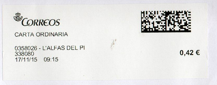 0358026-L´ALFAS DEL PI / CARTA ORDINARIA / 17/11/15