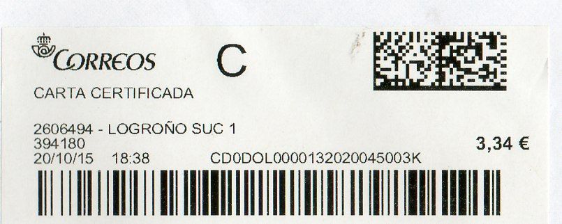 2606494-LOGROÑO SUC 1 / CARTA CERTIFICADA / 20/10/15