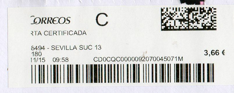 4108494-SEVILLA SUC 13 / CARTA CERTIFICADA / 00/11/15