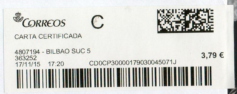 4807194-BILBAO SUC 5 / CARTA CERTIFICADA / 17/11/15
