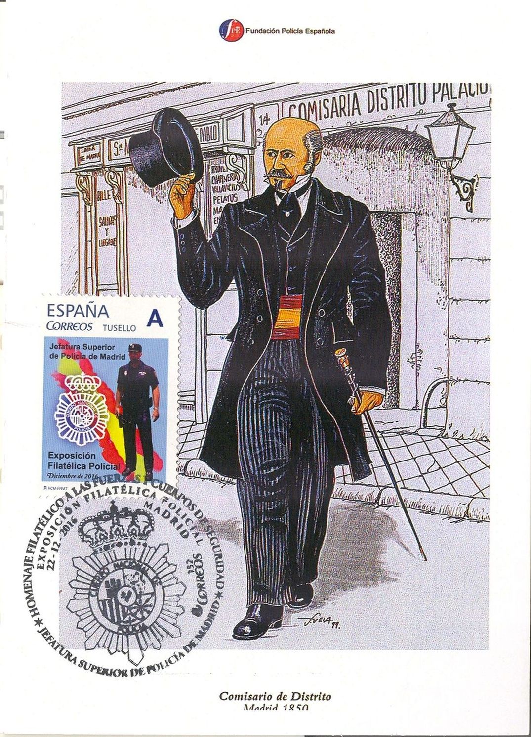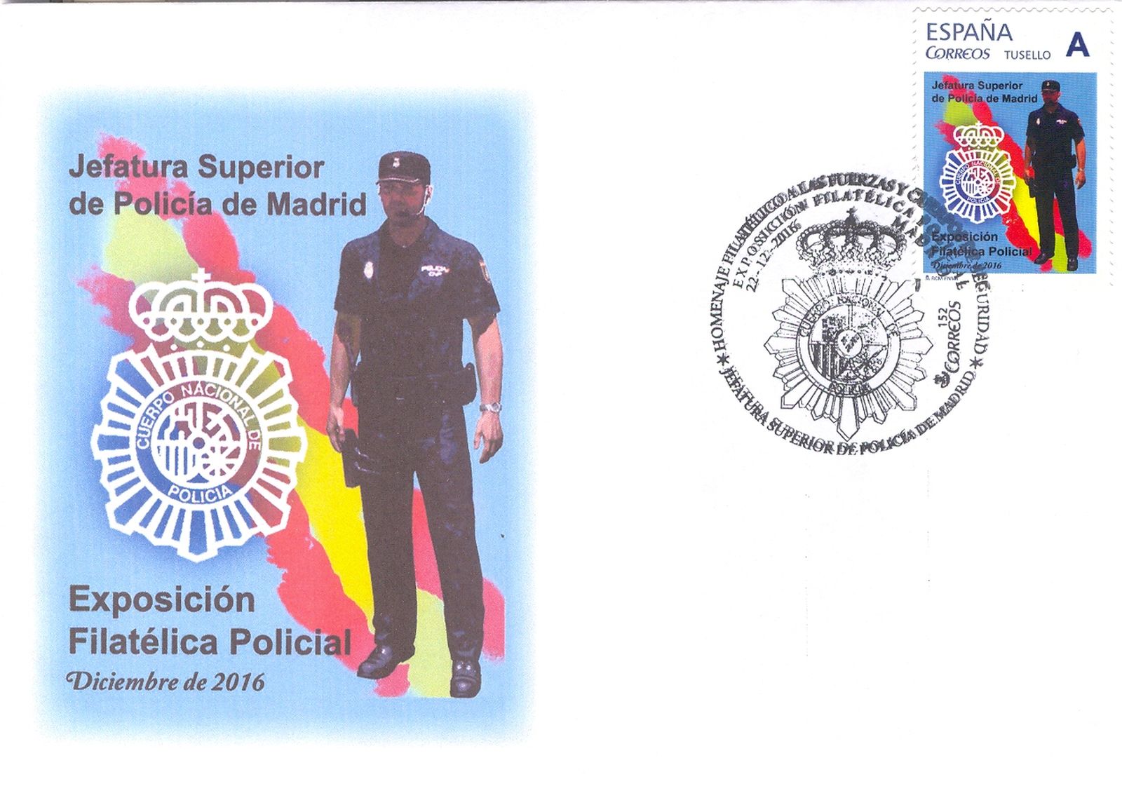 El día de la inauguración de la Exposición Filatélica Policial, indicada anteriormente, 22 de diciembre del año 2016, se usó un matasellos conmemorativo de la misma, con el número 152 de Correos, en unos sobres ilustrados que se regalaban a los asistentes.