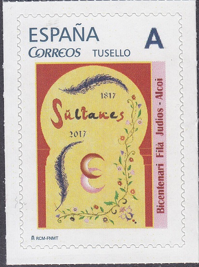 Con motivo del Bicentenario de los Sultanes en la Filá Judíos este año (Comparsas de las Fiestas de Moros y Cristianos en Alcoy), entre otros actos conmemorativos, se ha realizado un Tu Sello, con nº asignado por Correos 1710397323 (001 a 011) con fecha 13/02/2017, y con una tirada de 275 sellos.
