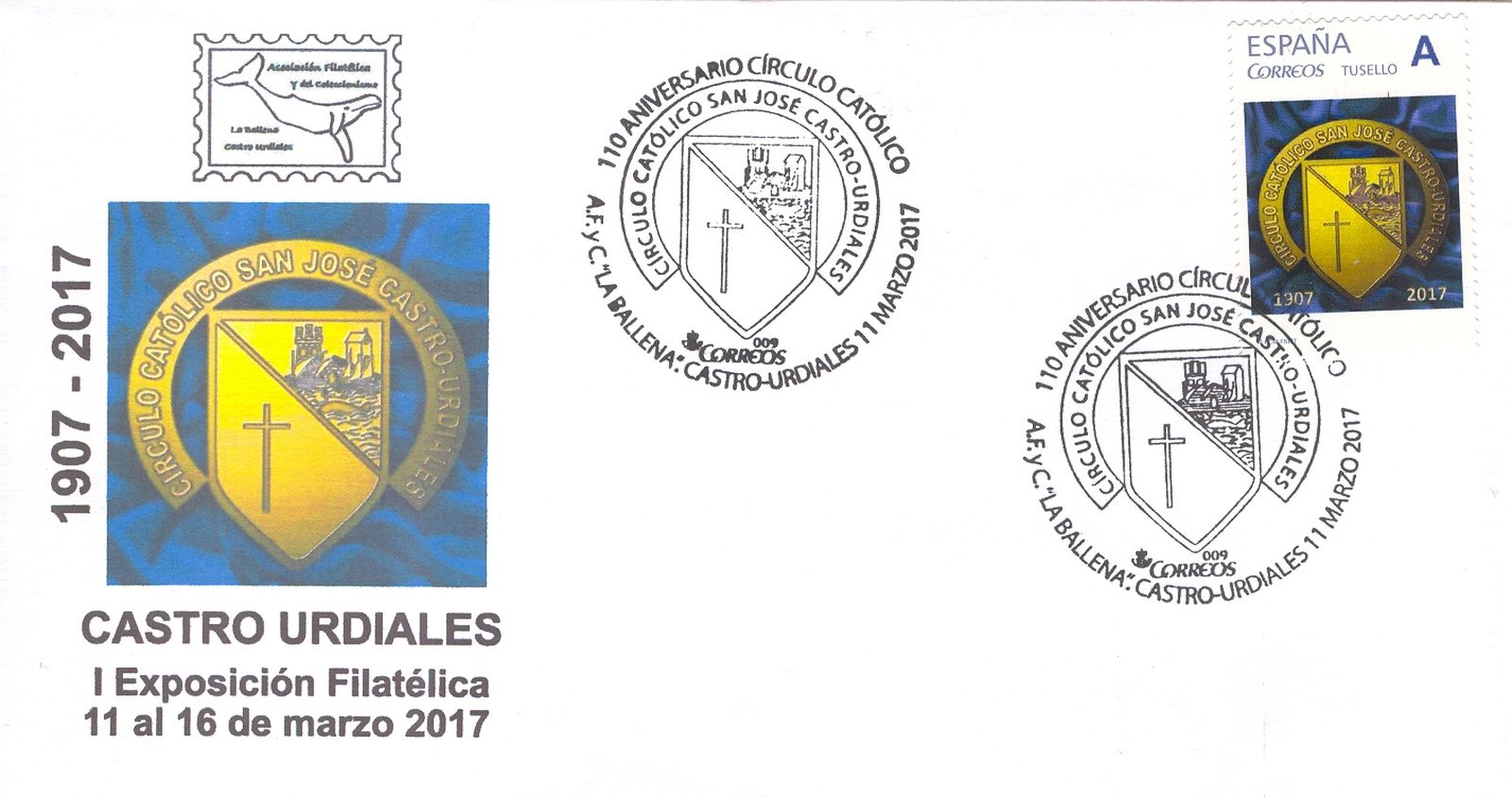 Con ocasión de la celebración, en Castro-Urdiales, de la "I Exposición Filatélica" que, con ocasión de la conmemoración del "110.º Aniversario del Círculo Católico" ha tenid lgar del 11 al 16 del presente mes de marzo, la recientemente constituida Asociación Filatélica y del Coleccionismo "La Ballena" de la localidad ha emitudo un sello personalizado.