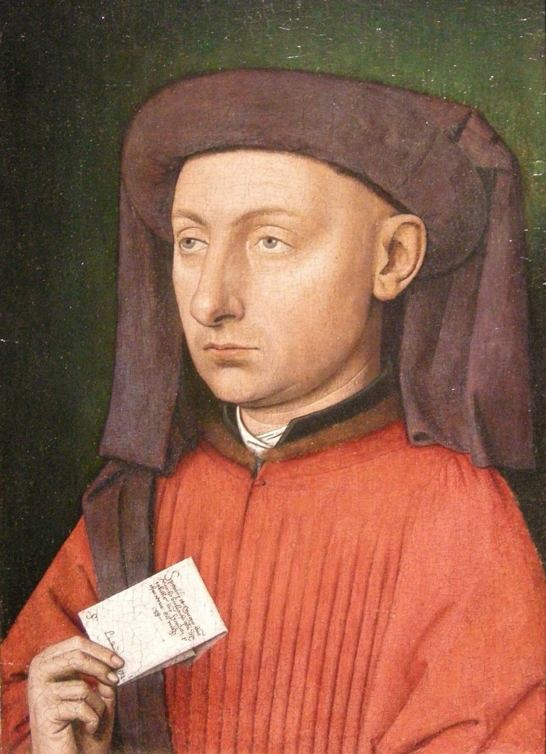 Retrato de Marco Barbarigo, sobre 1450, obra de algún seguidor de Jan van Eyck. Óleo sobre tabla, 24.2 x 16 cm