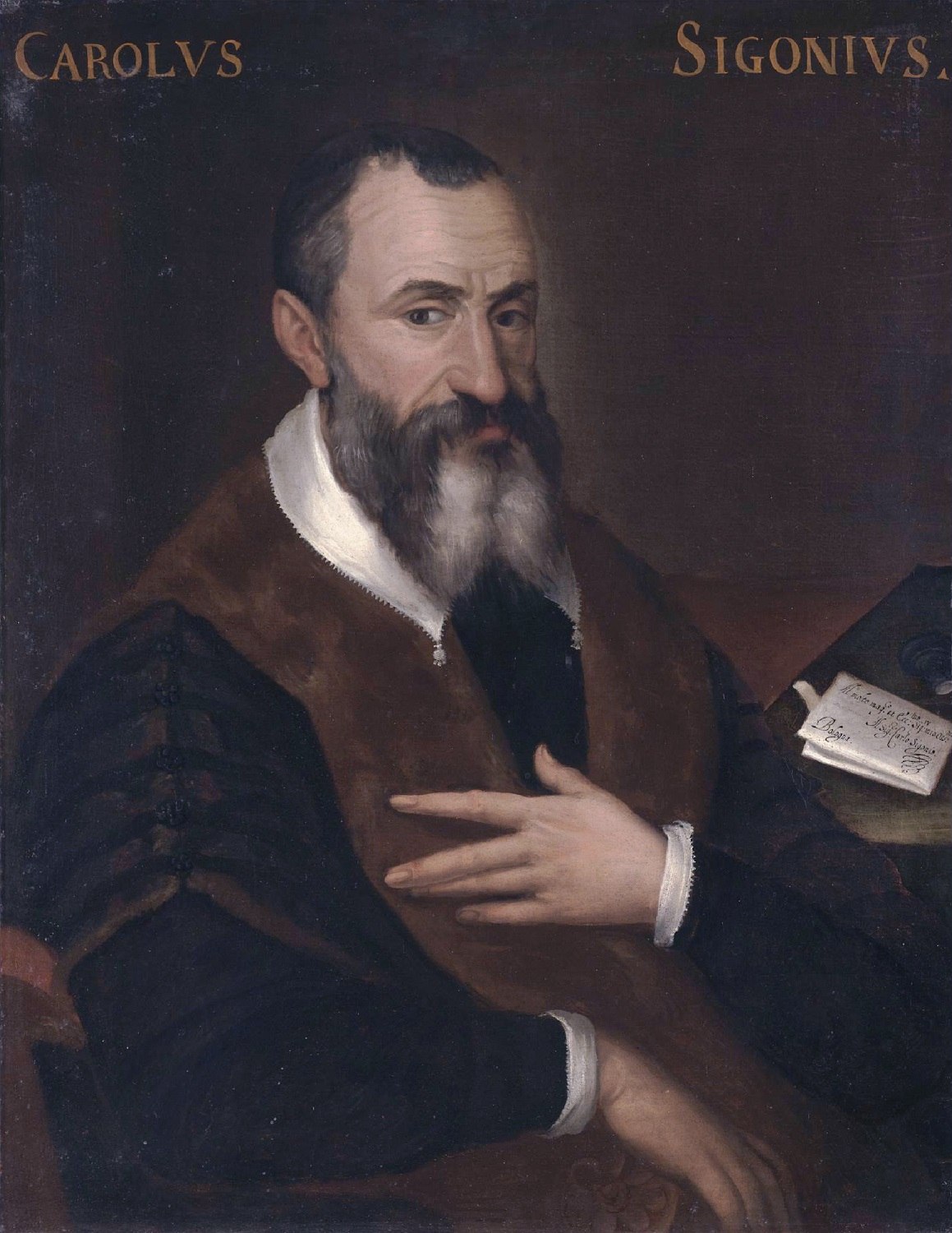 Retrato de Carlo Sigonio, por algún seguidor de Bartolomeo Passerotti. Óleo sobre tela, 87 x 68 cm