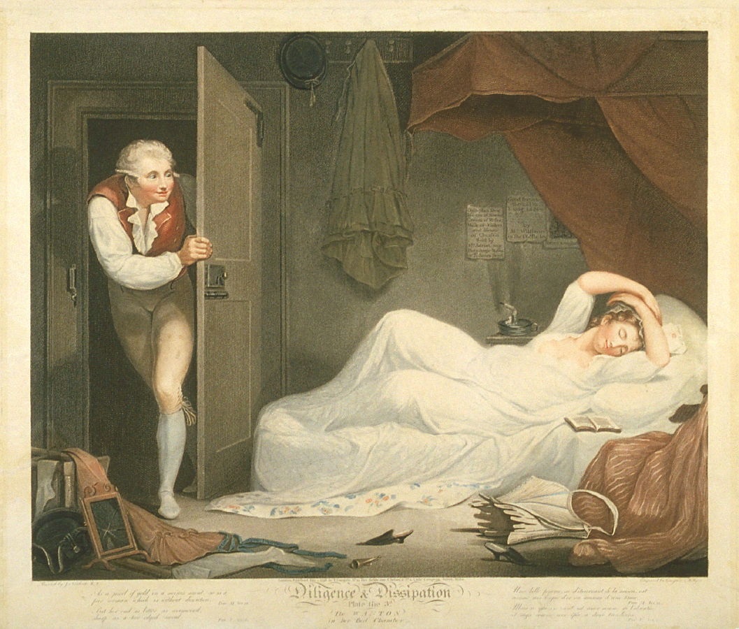 Es una de las diez láminas que a finales del siglo XVIII grabaron en Londres el artista Thomas Hellyer y el impresor francés Thomas Gaugain, a partir de las obras originales del pintor inglés James Northcote (1746-1831) para su serie narrativa Diligence and Dissipation.
