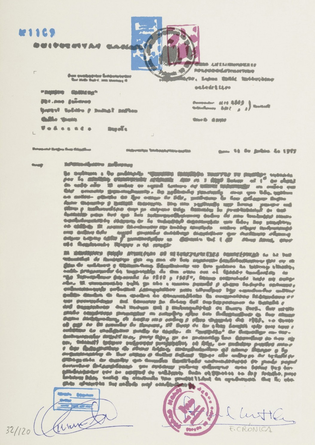 Detalle de la cabecera del "documento fiscal" sobre papel timbrado que simula la obra: