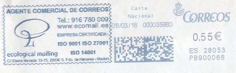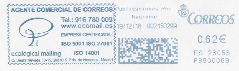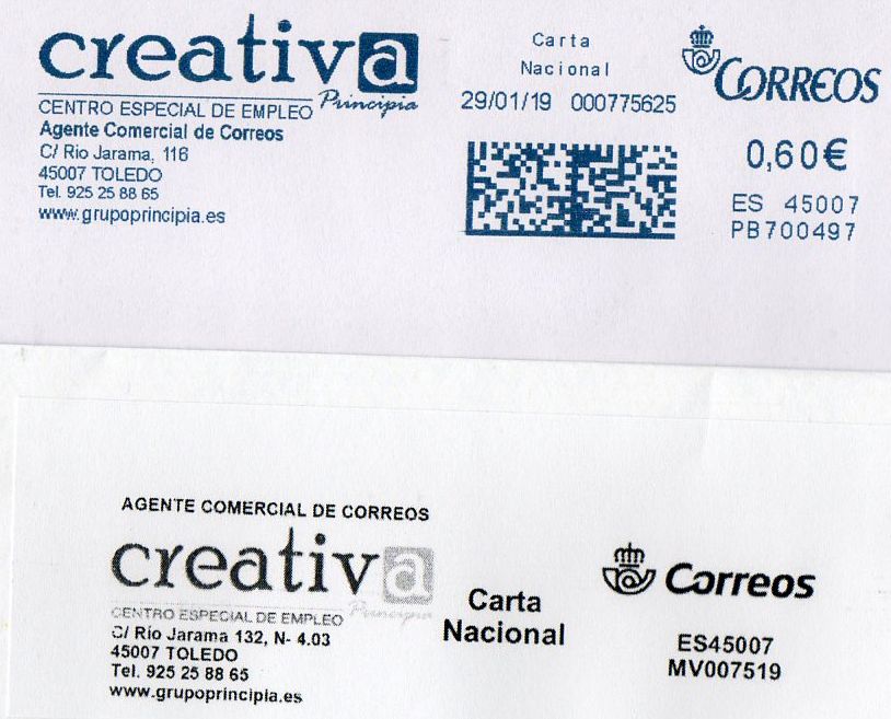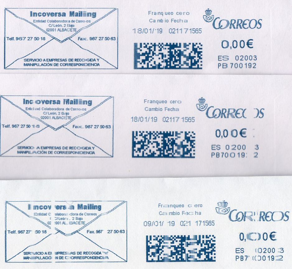 Como ya avisé, las 616 máquinas Pitney Bowes que existían al 30/06/2018 han desaparecido al 31/01/2019. Podría verse alguna estampación de franqueo residual de alguna máquina que todavía quedase con saldo. Pero no será fácil.