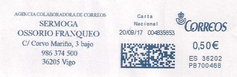 1964 escribió:SNAEUROPE da la baja a su pitney por la Intimus NT000351 que ahora tiene el código de Admisión postal distinto, aunque está localizado en Vitoria. La impronta necesita reparación :mrgreen: ...cuanto trabajo doy al santo...Azul494.jpg