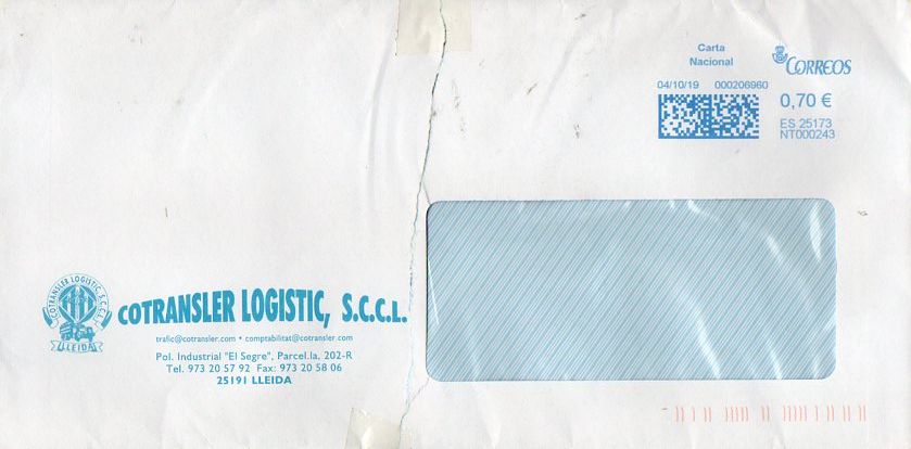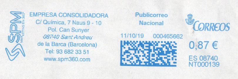 La PB700138 "reconvertida" en la intimus NT000139. En su larga vida como Pitney habrá habido cambio de logo, oficina de admisión( ahora está en Sant Andreu de la Barca) y dirección ( ahora ocupa dos naves, 9 y 10 ,de la misma calle, eso sí). También ha cambiado su web.