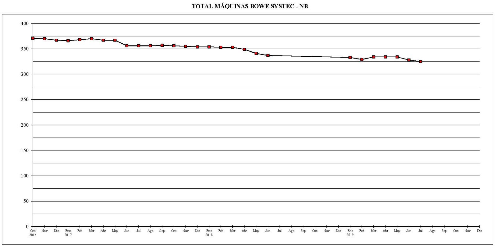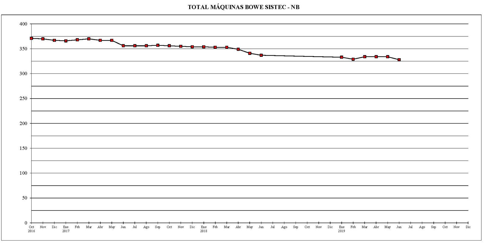 Pongo un gráfico con la evolución del parque total de máquinas desde octubre del año 2016 hasta el mes actual.
