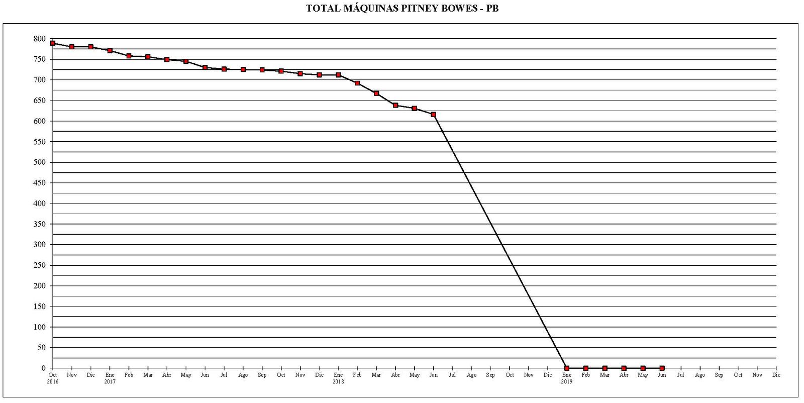 - Al 30 de junio del año 2019, existían un total de 797 máquinas de franquear digitales en funcionamiento. El parque existente, se había reducido en 4 máquinas en comparación con el final del mes anterior.