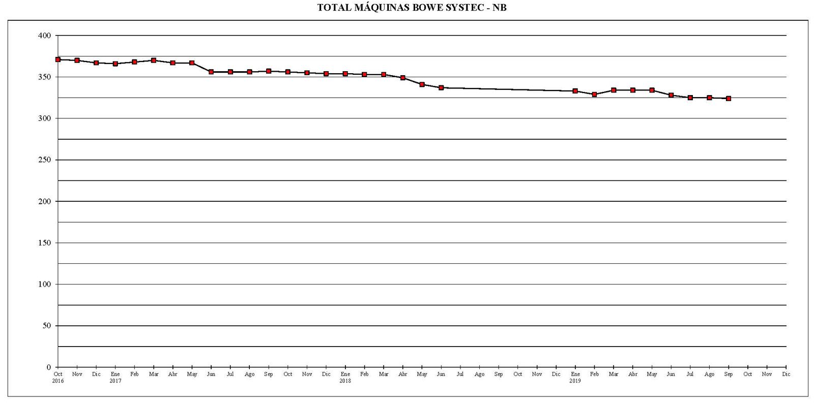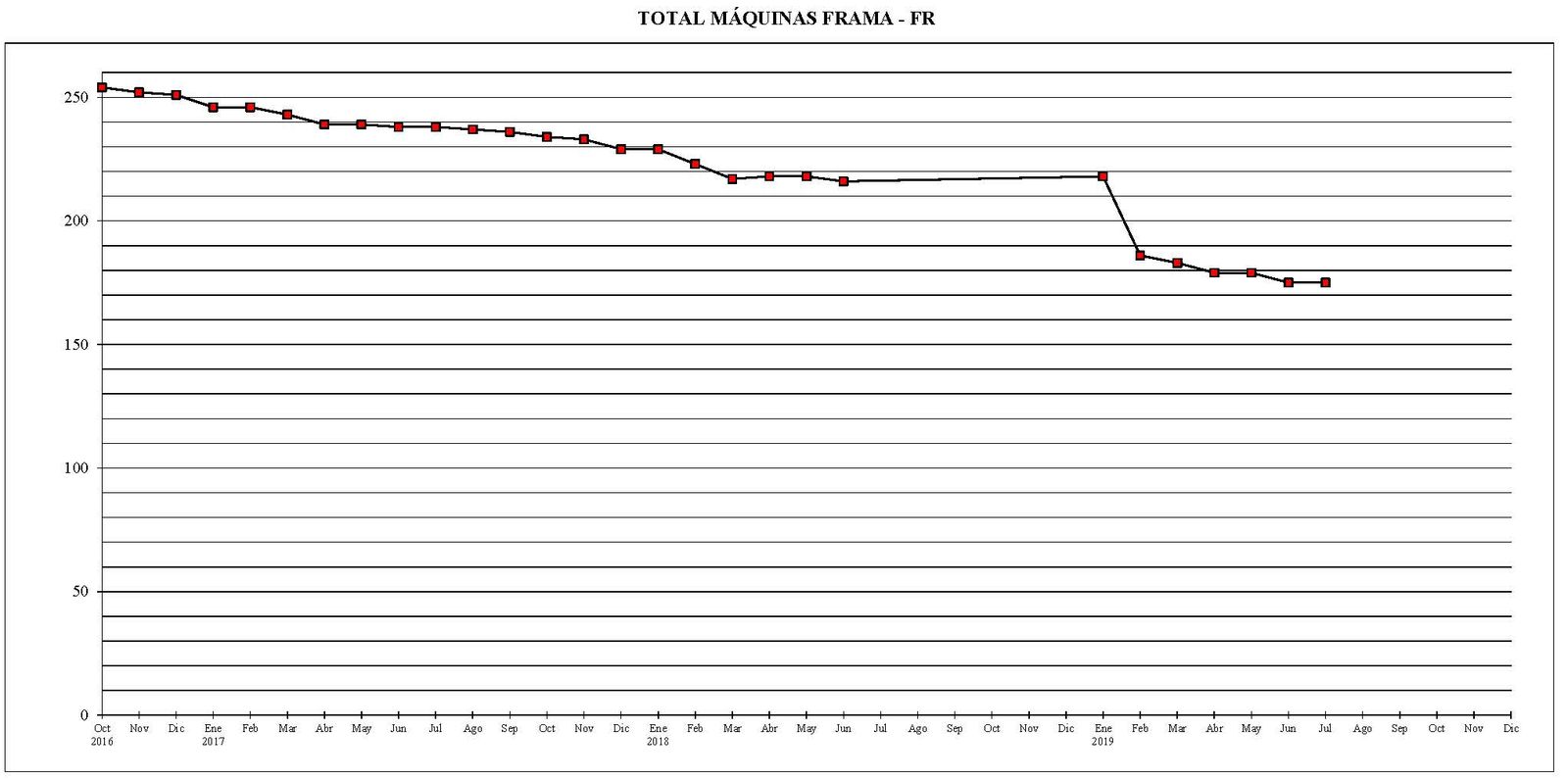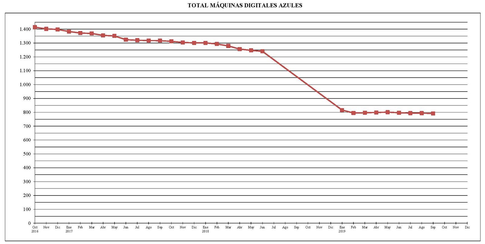 Desde el mes de octubre del año 2016 al actual, el parque total de máquinas ha sufrido un descenso de 622 unidades.