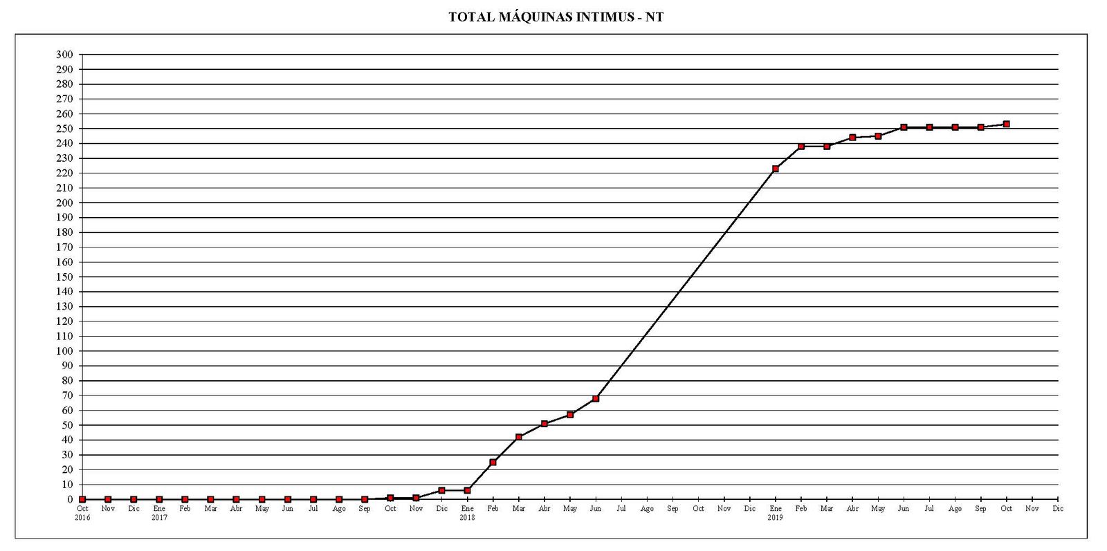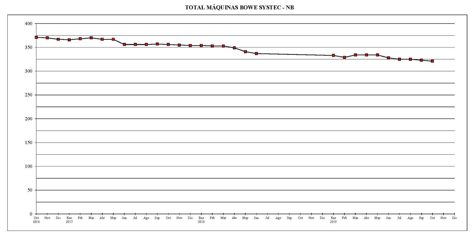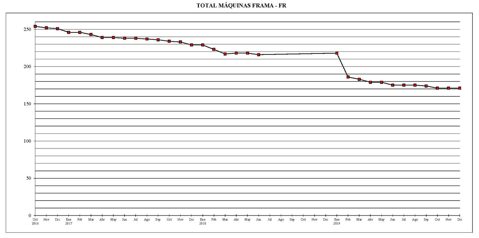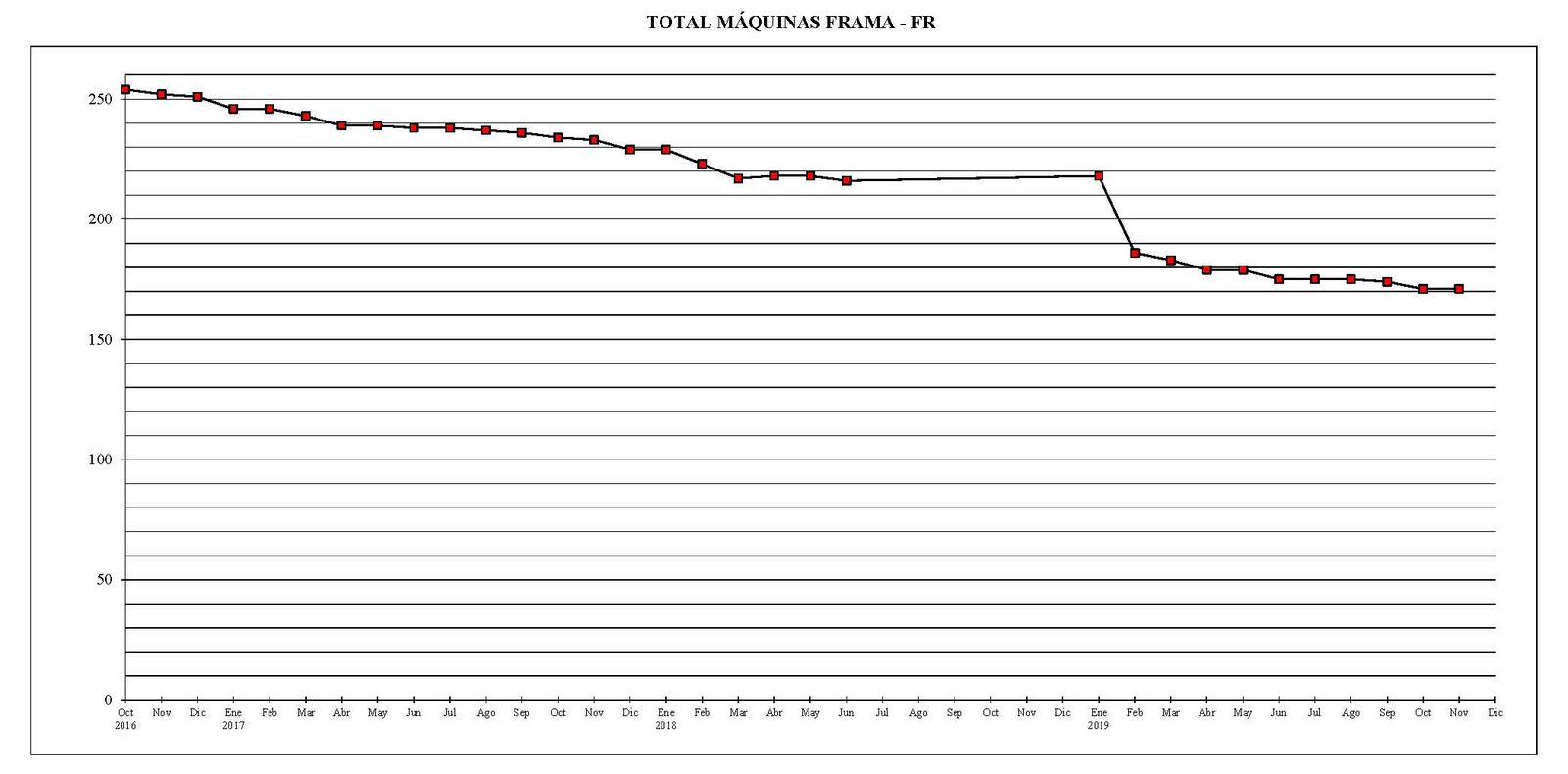 Desde el mes de octubre del año 2016 al actual, el parque total de máquinas ha sufrido un descenso de 626 unidades.