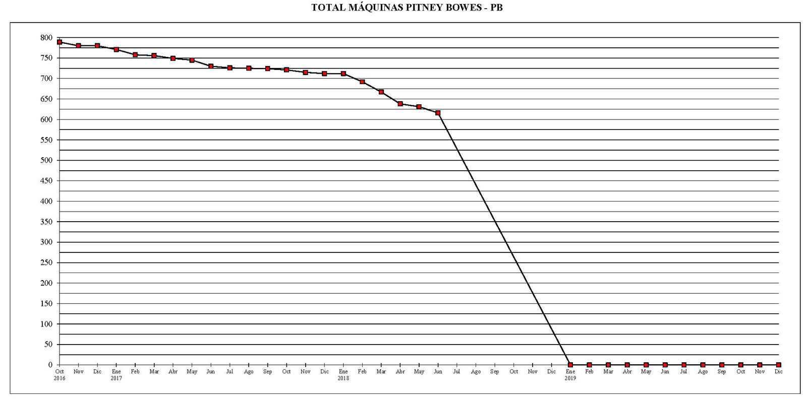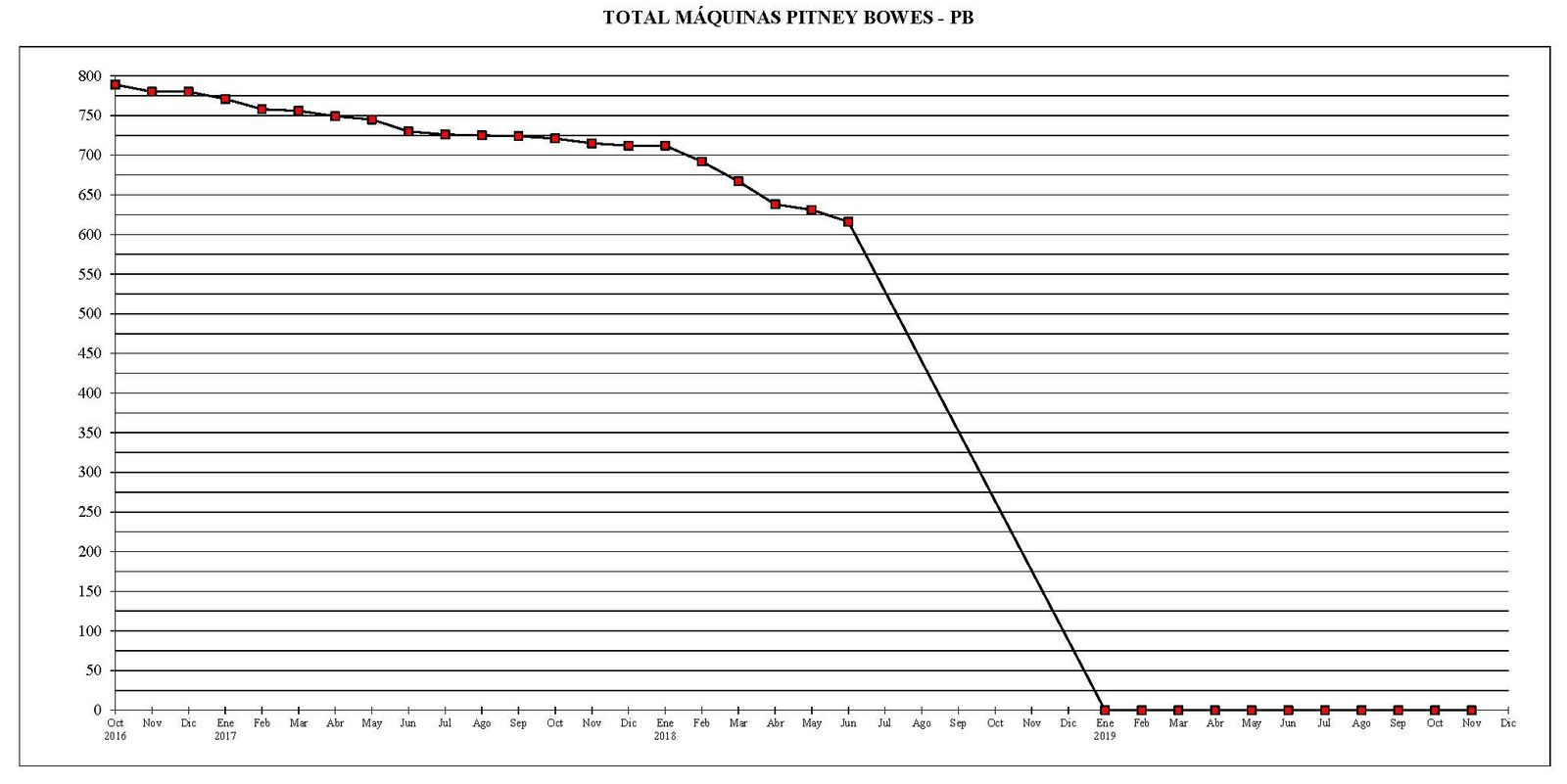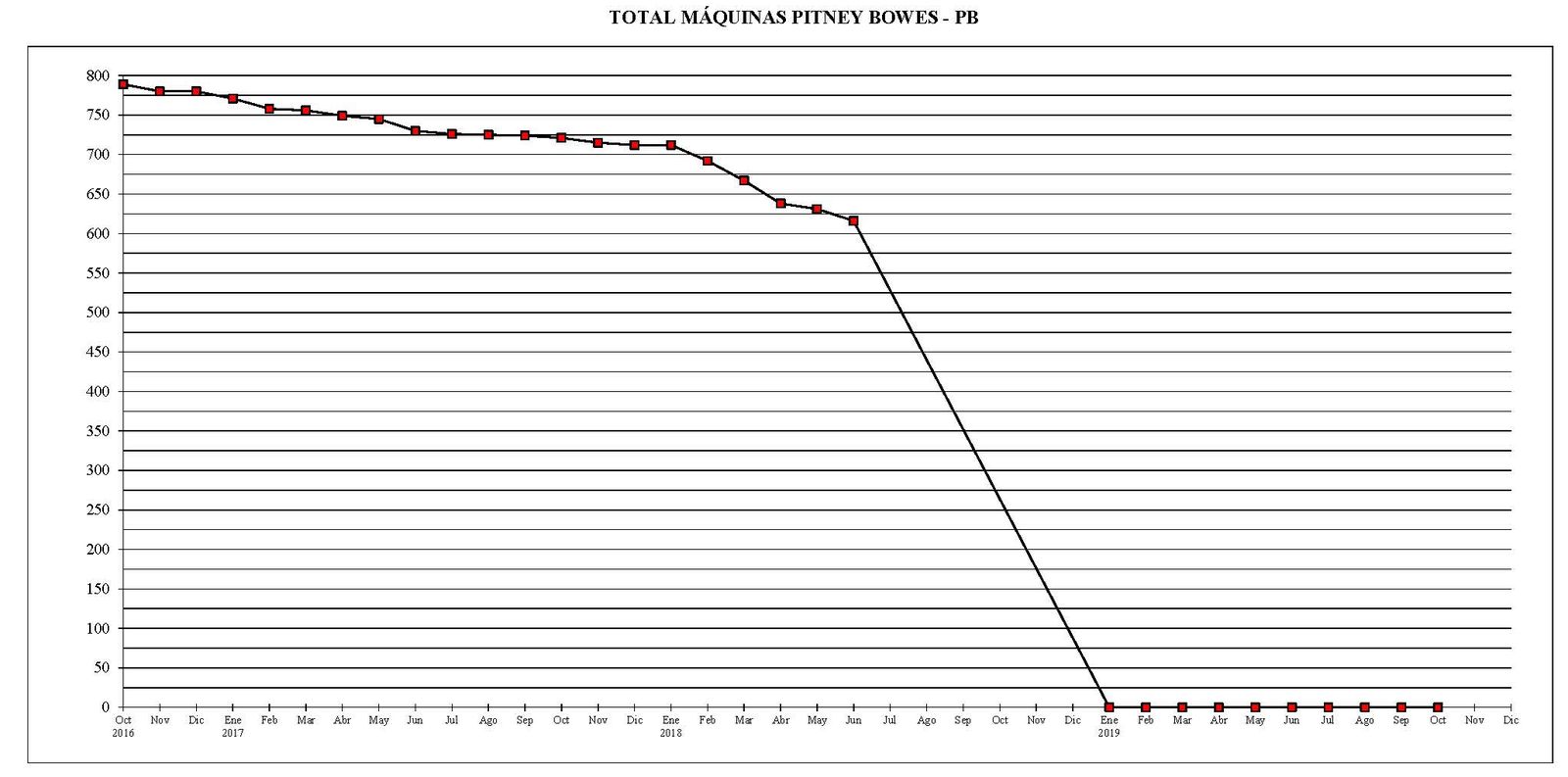 - Al 31 de octubre del año 2019, existían un total de 788 máquinas de franquear digitales en funcionamiento. El parque existente, se había reducido en 3 máquinas en comparación con el final del mes anterior.
