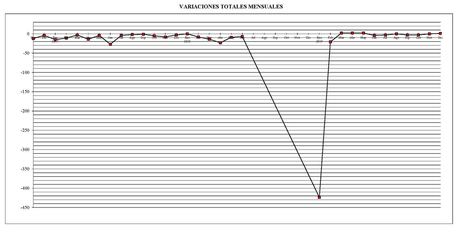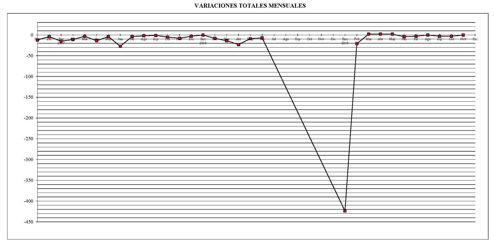 También pongo otro gráfico con las variaciones mensuales en el parque total de máquinas desde el pasado mes de noviembre del año 2016 en comparación con el mes anterior.