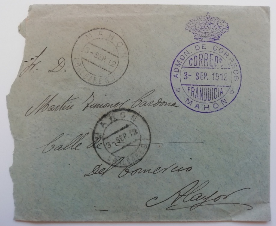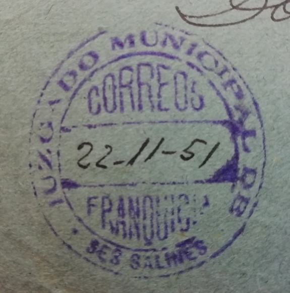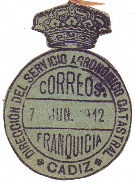 Querido Amigo "Lego" de "San Filatelio", aquí traigo una Franquicia, que aunque está catalogada creo?, en las del Gobierno, pero creo que adelanta la fecha a la catalogada: