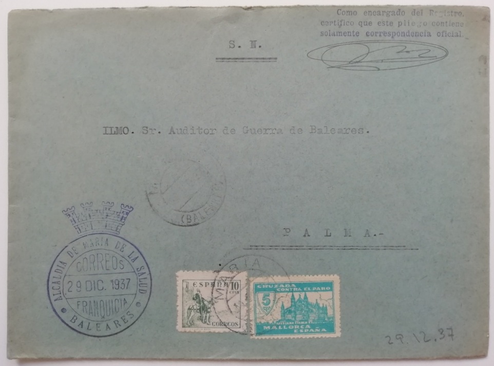 Franquicia de la Alcaldia de Maria de la Salud. 29 diciembre 1937