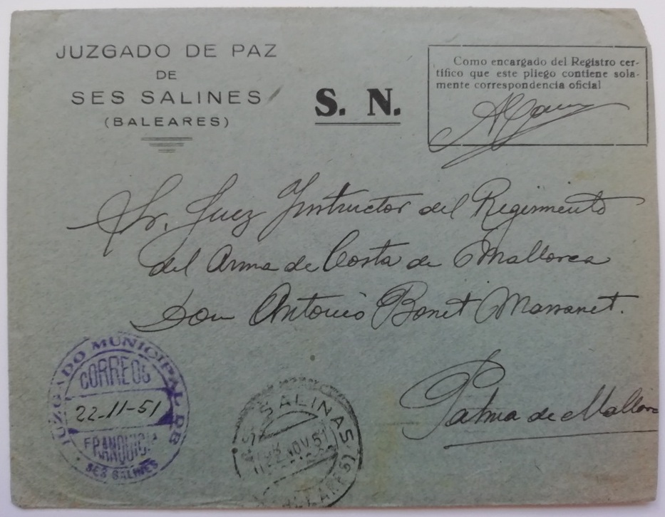 Juzgado municipal de Ses Salines. 22 noviembre 1951