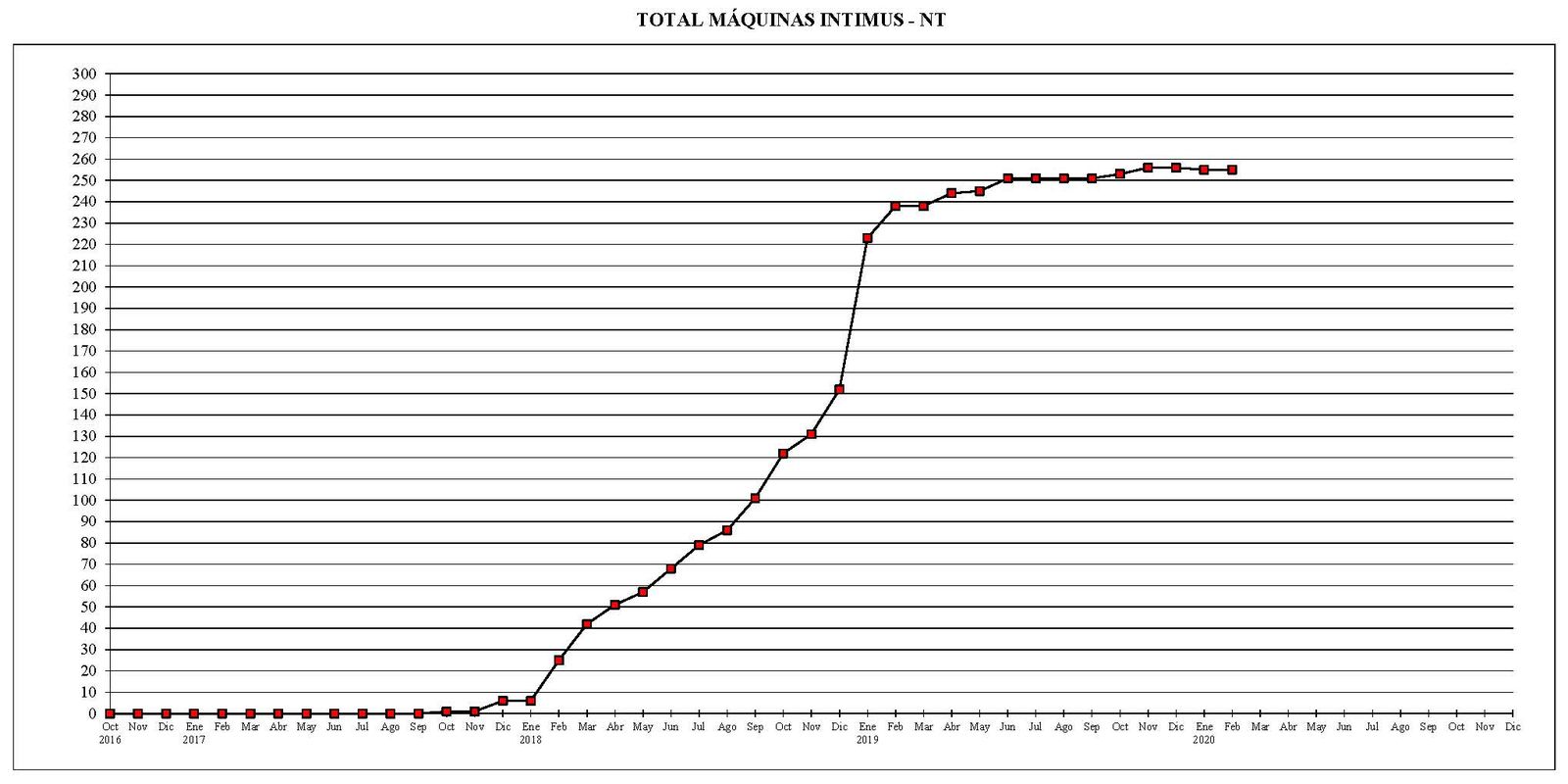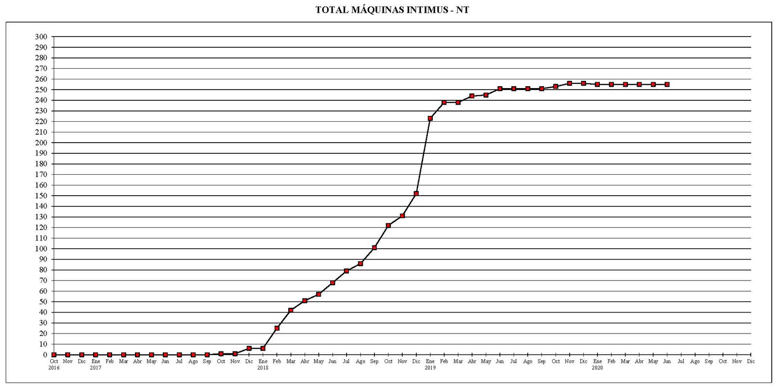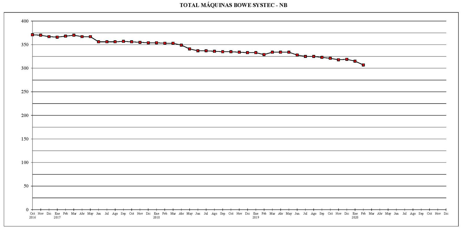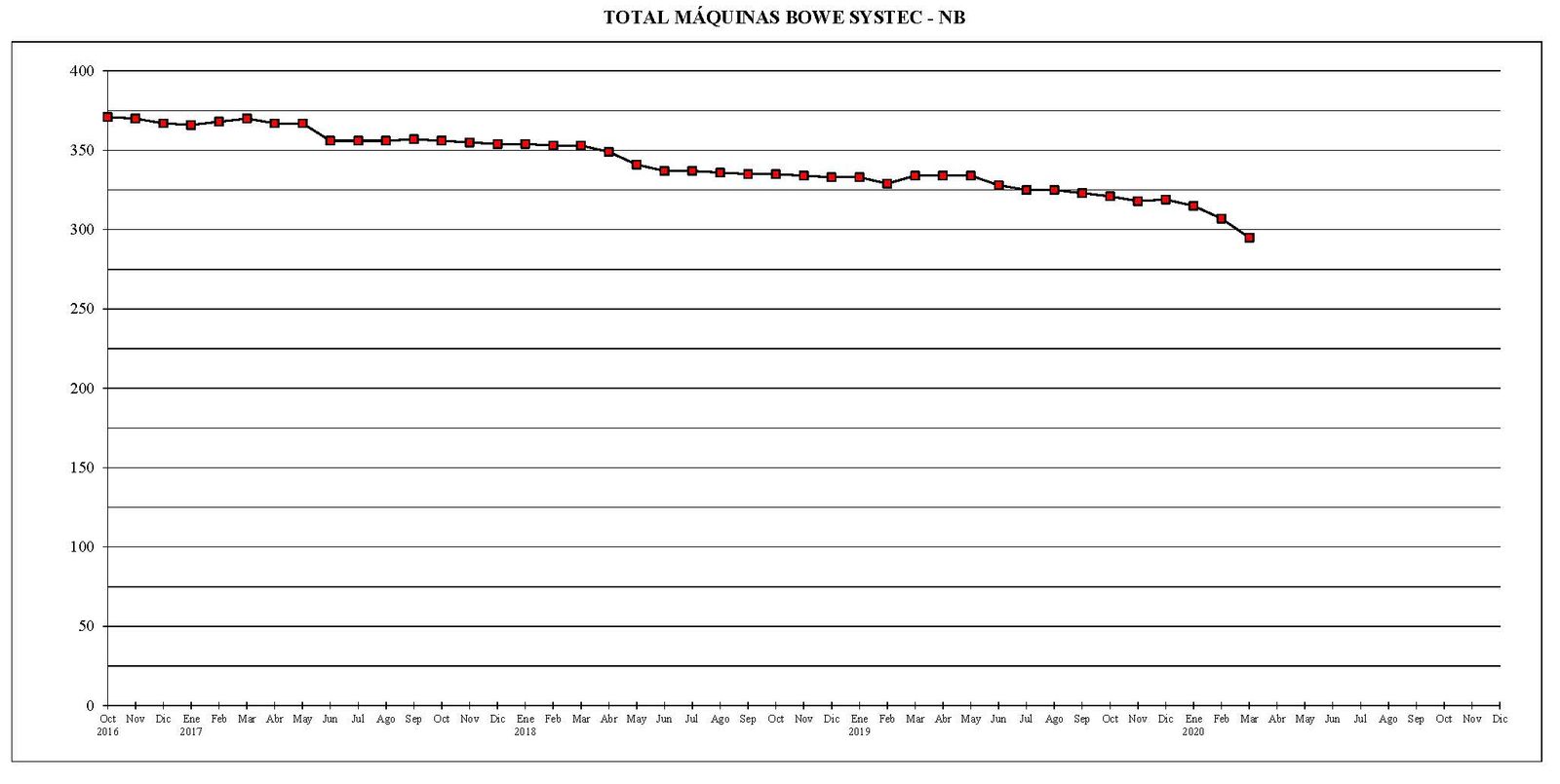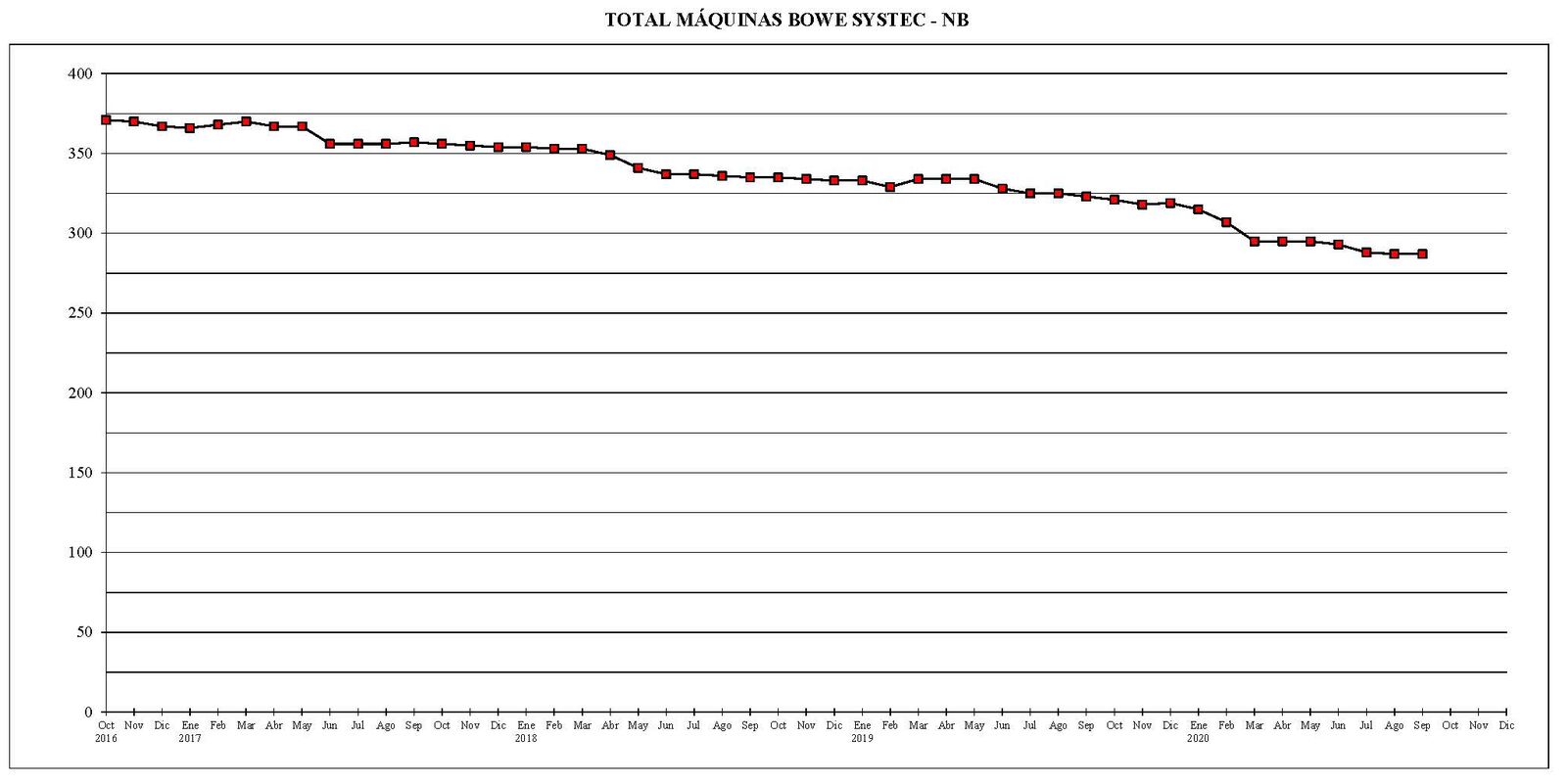 Desde el mes de octubre del año 2016 al actual, el parque total de máquinas ha sufrido un descenso de 672 unidades.