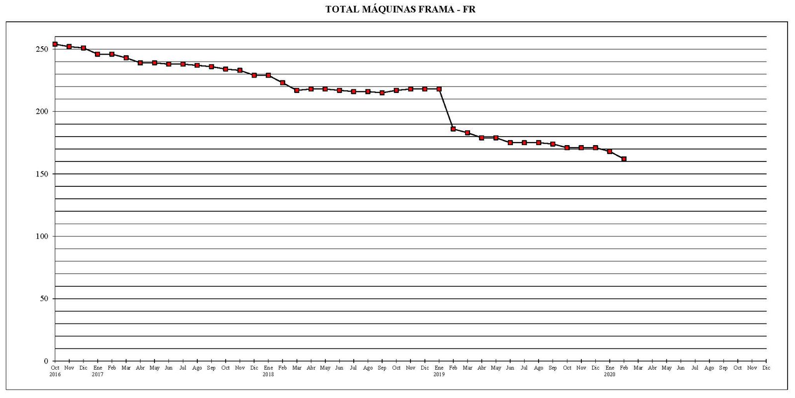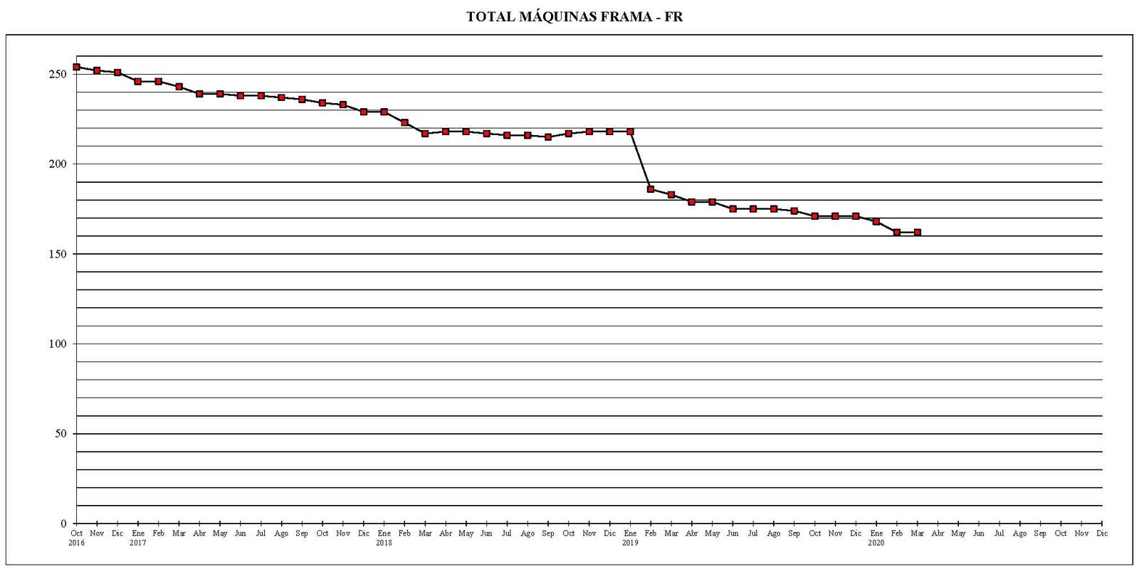 Desde el mes de octubre del año 2016 al actual, el parque total de máquinas ha sufrido un descenso de 673 unidades.