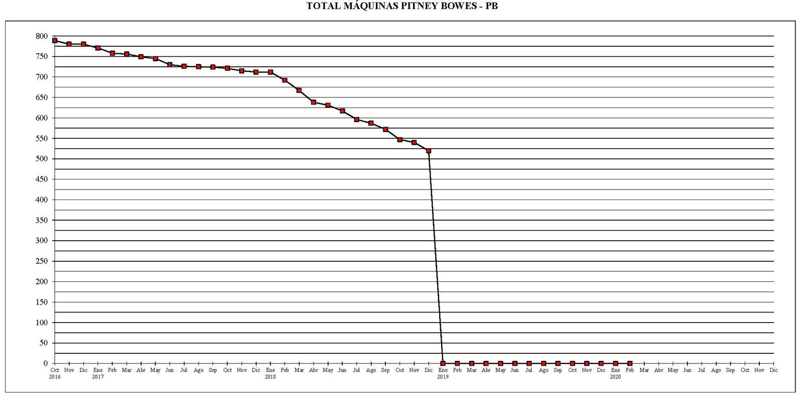 - Al 31 de julio del año 2020, existían un total de 745 máquinas de franquear digitales en funcionamiento. El parque existente, se había reducido en 7 máquinas en comparación con el final del mes anterior.