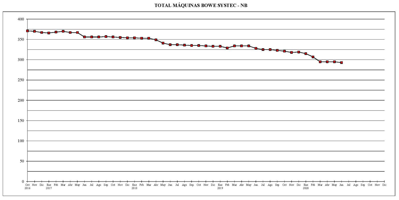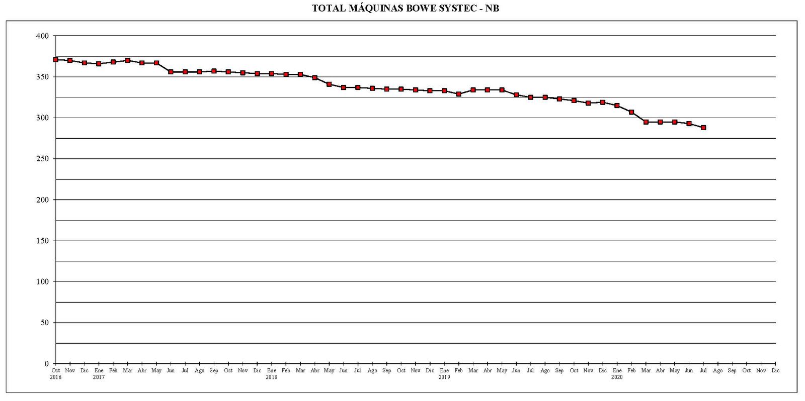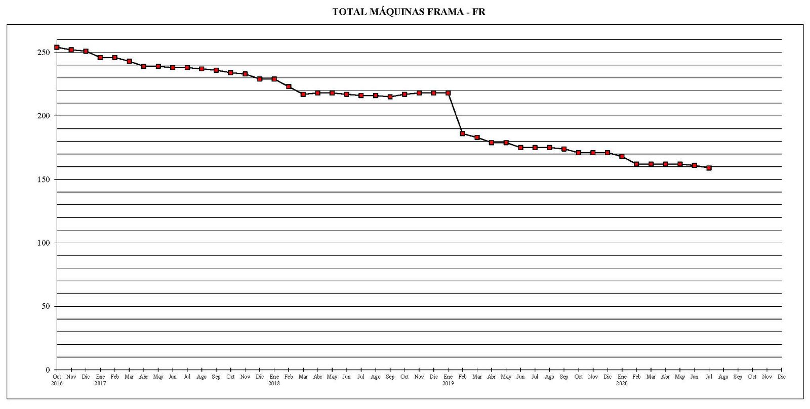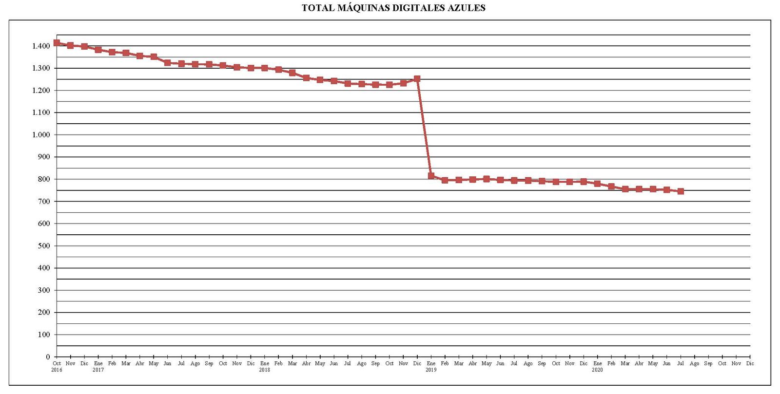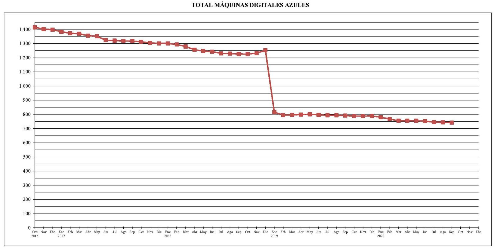 Desde el mes de octubre del año 2016 al actual, el parque total de máquinas ha sufrido un descenso de 670 unidades.