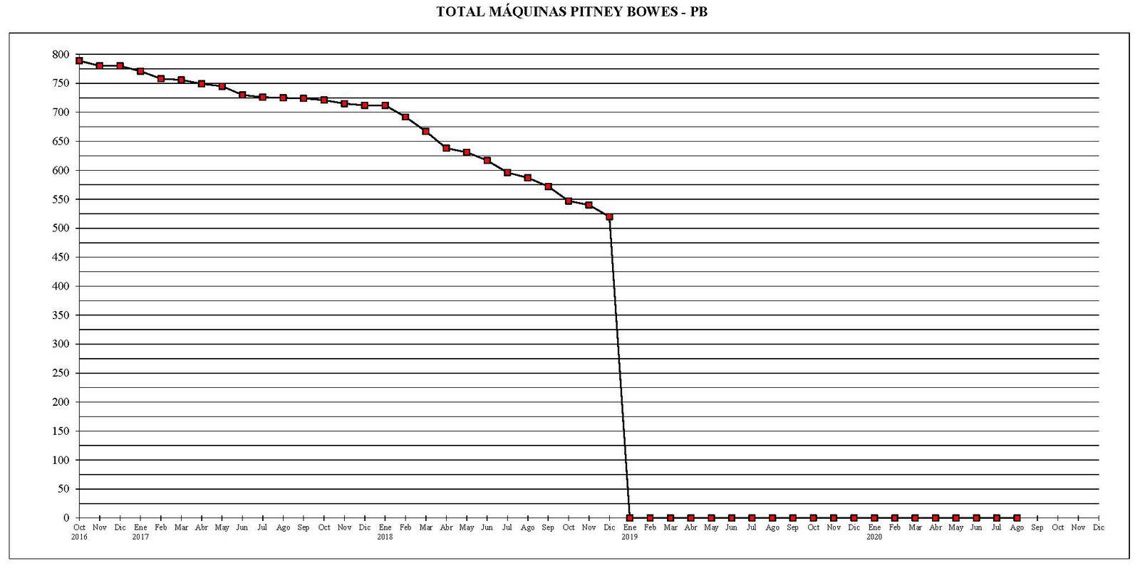 - Al 31 de agosto del año 2020, existían un total de 744 máquinas de franquear digitales en funcionamiento. El parque existente, se había reducido en 1 máquina en comparación con el final del mes anterior.