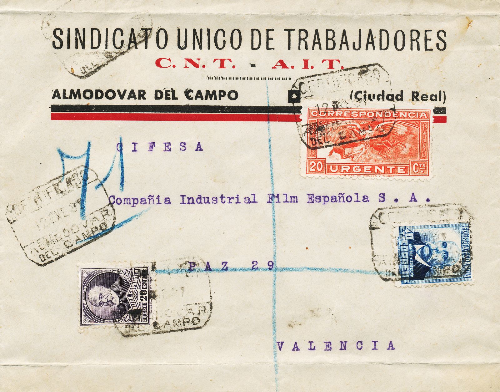 Ambulante. Tajo. Amb. Tajo. 5. Certificado. 1937-01-13. Carta. Anverso.jpg