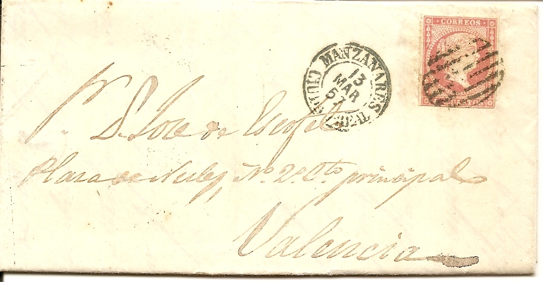 Carta enviada desde Manzanares (Ciudad Real) a Valencia.