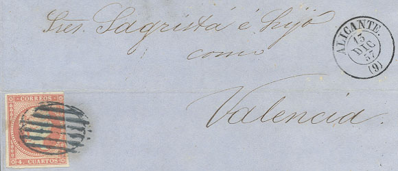 ALICANTE Tipo 1854 Est. Grande en ROJO .....(Pag.3 Carta Ed.40 y Frag. SN)