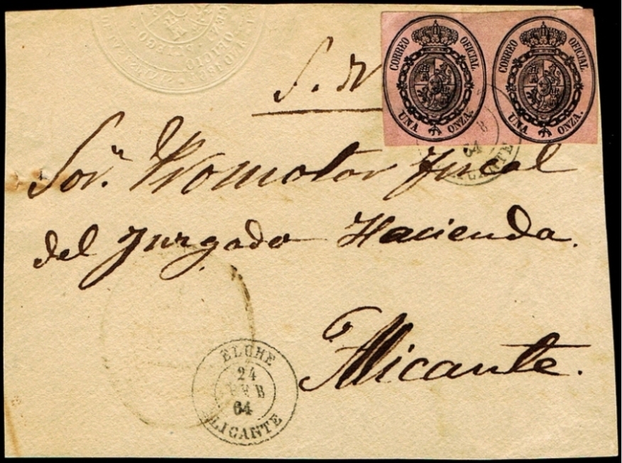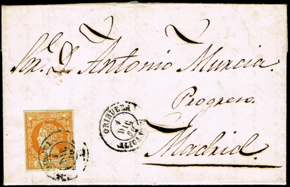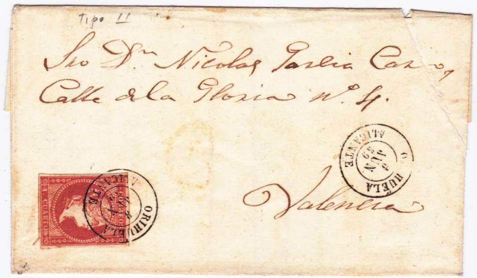 ORIHUELA Tipo 1854 en ROJO .....(Pag.3 Carta Ed.33 y Carta Ed.48)