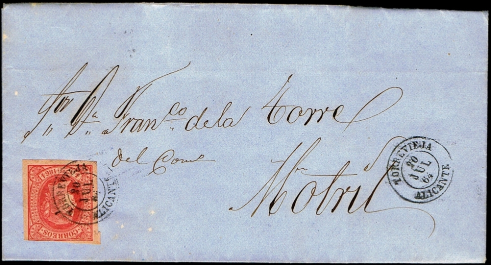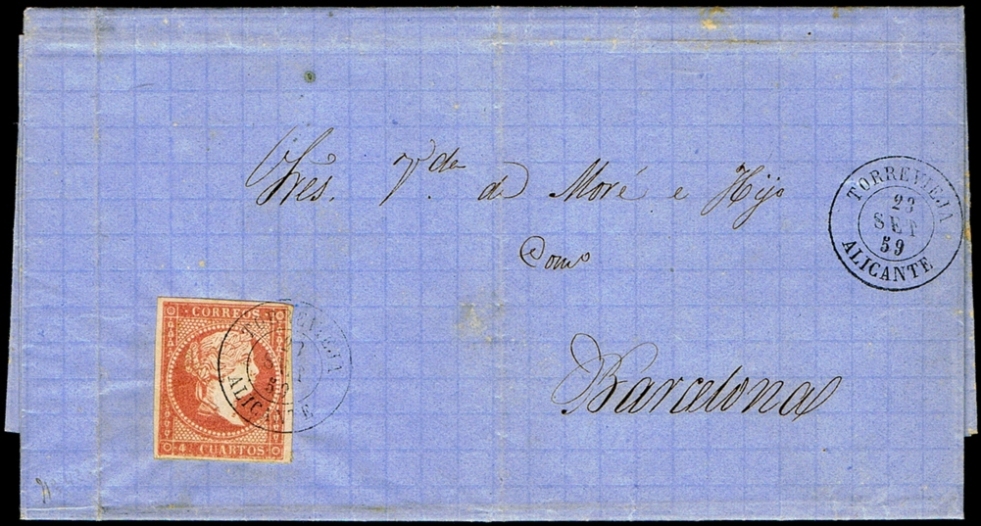 TORREVIEJA Tipo 1854 en AZUL .....(Pag.3 Carta Ed.48 y Frag. SN)