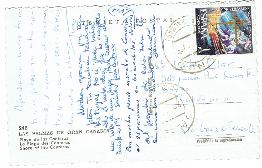 Aquí va uno NO catalogado, "Circular de Puente" : GANDO (1961), que se supone fue concedido a partir del año 1960, con la ampliación de la pista original (Recorte de la tarjeta, donde en el Texto dice: "esperando el avión en el Aeropuerto") :
