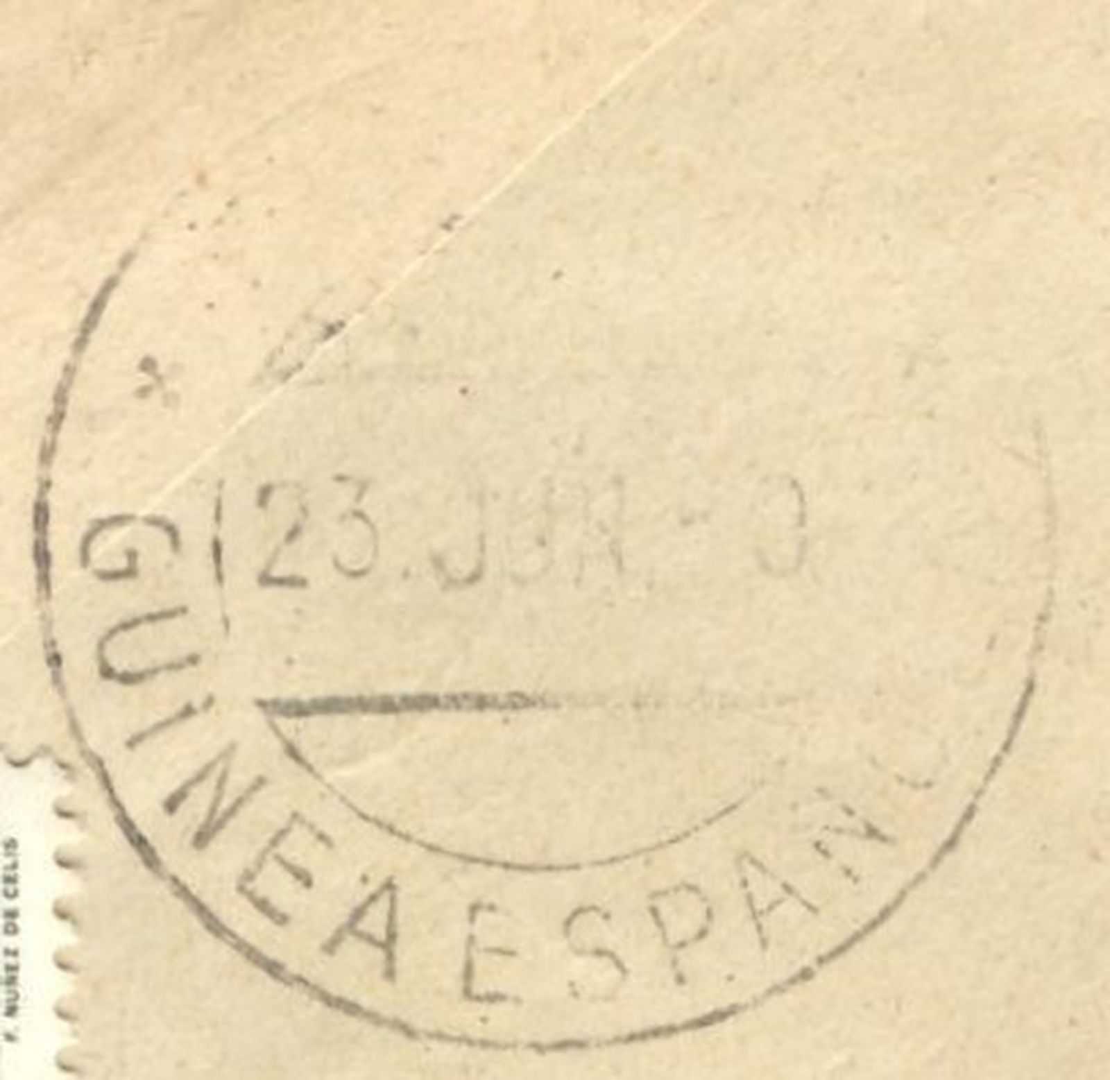 La cual debió seguir usando el fechador puente porque aquí lo vemos sobre un sello local de Guelaia en plena Guerra Civil, lástima que no se vea el año:
