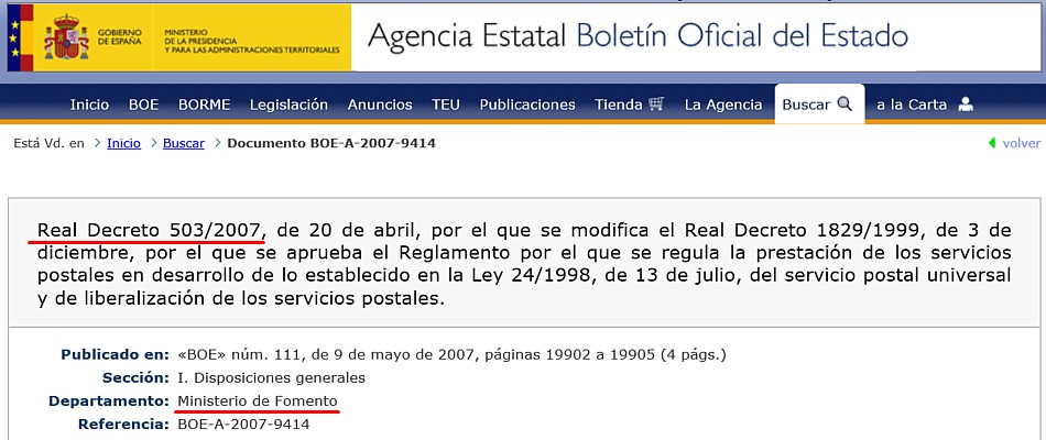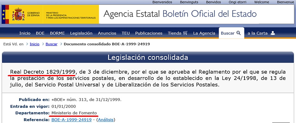 No obstante lo anterior, existen entornos especiales de reparto recogidos en el Reglamento de Servicios Postales, Real Decreto 1829/1999 de 3 de diciembre, modificado por Real Decreto 503/2007, de 20 de abril.