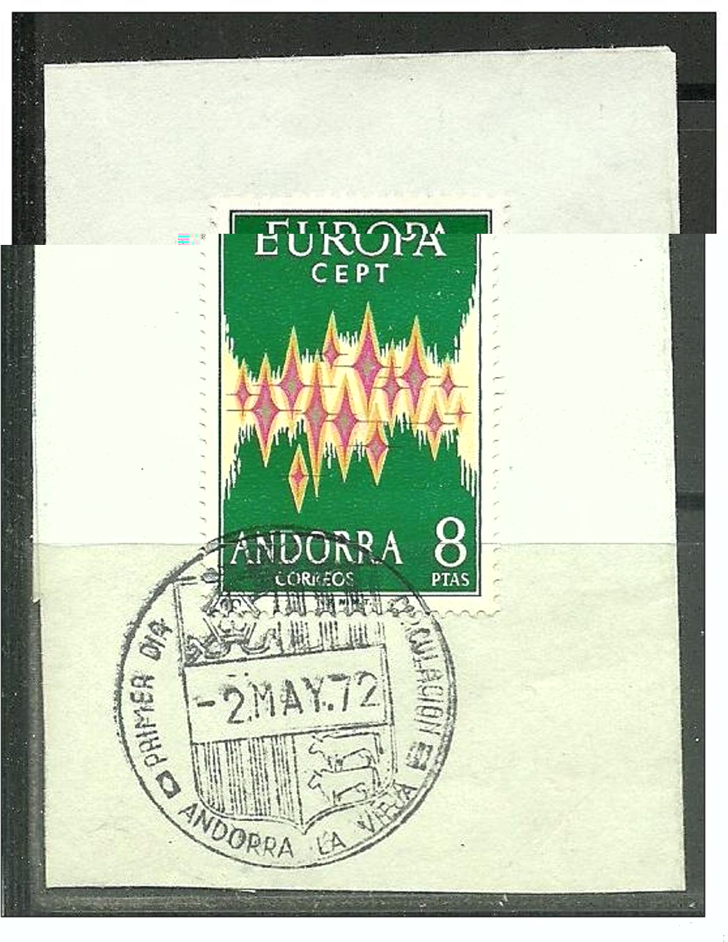 Hola. Aunque no puedo ampliar la imágen para verlo mejor, en el sello de la derecha hay detalles que delatan su falsedad. El bucle de la "P" de Europa, adelgazado tanto en su parte superior como en la terminación inferior. "PTAS" poco nítido, mal definido y en algunos de los "rombos" también se destapan anomalías. Esta falsificación, si no estoy errado, proviene de Alemania y siempre obliterada con matasellos 1er. día "2 MAY.72" como en este caso.