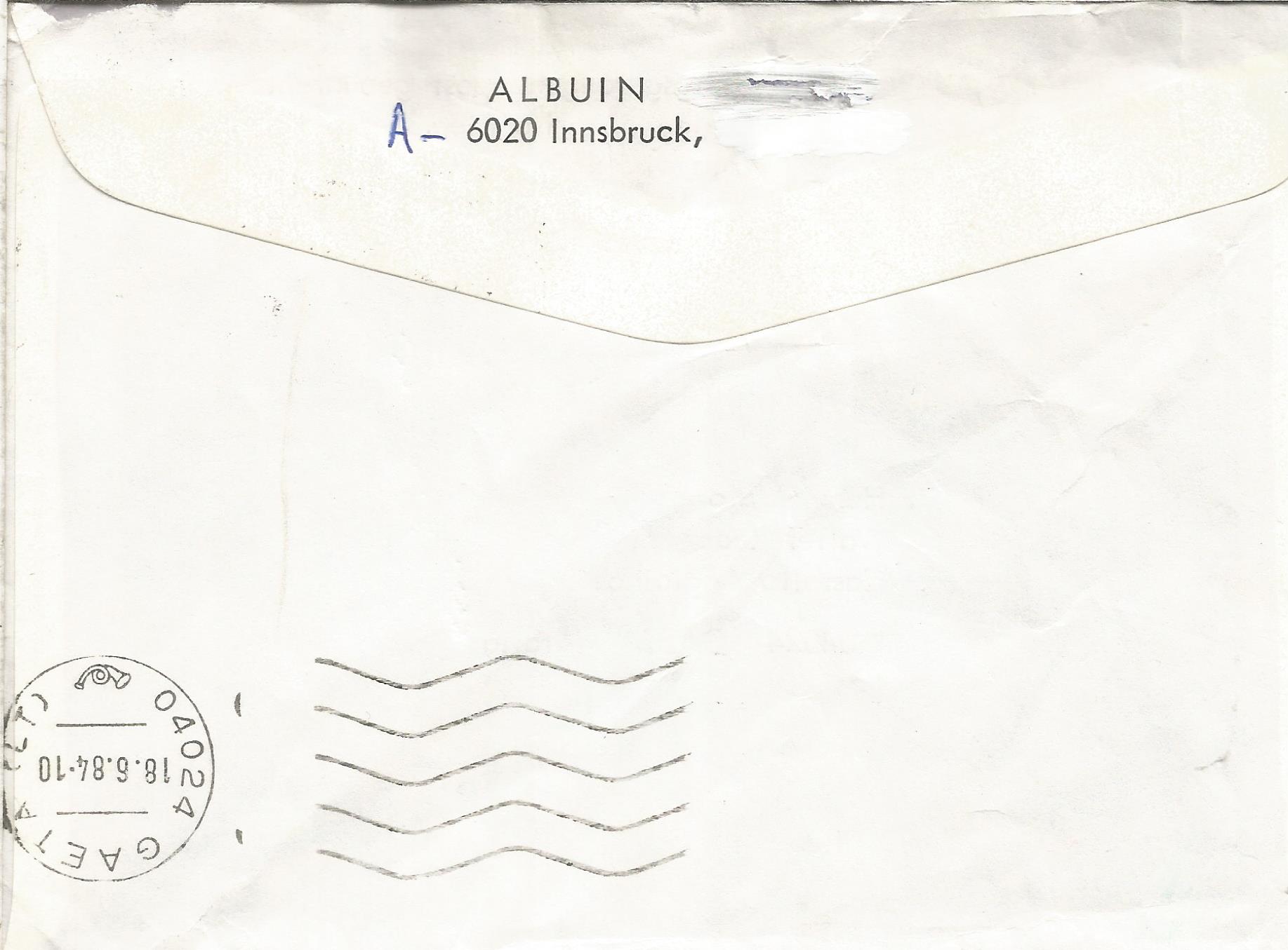 Pongo el dorso de la carta por si podemos sacar algo, al dorso tenemos el matasellos de llegada a Gaeta, y el remite, que ha sido borrado en parte, veo que pone ALBUIN , y tapado aunque con una luz he visto que pone Domplatz 4, mirando por google veo que actualmente es un negocio de cristal artístico, no se si en la época de la carta había lo mismo o era otro negocio, no he podido saber que es Albuin, si un nombre, una empresa, o que.
