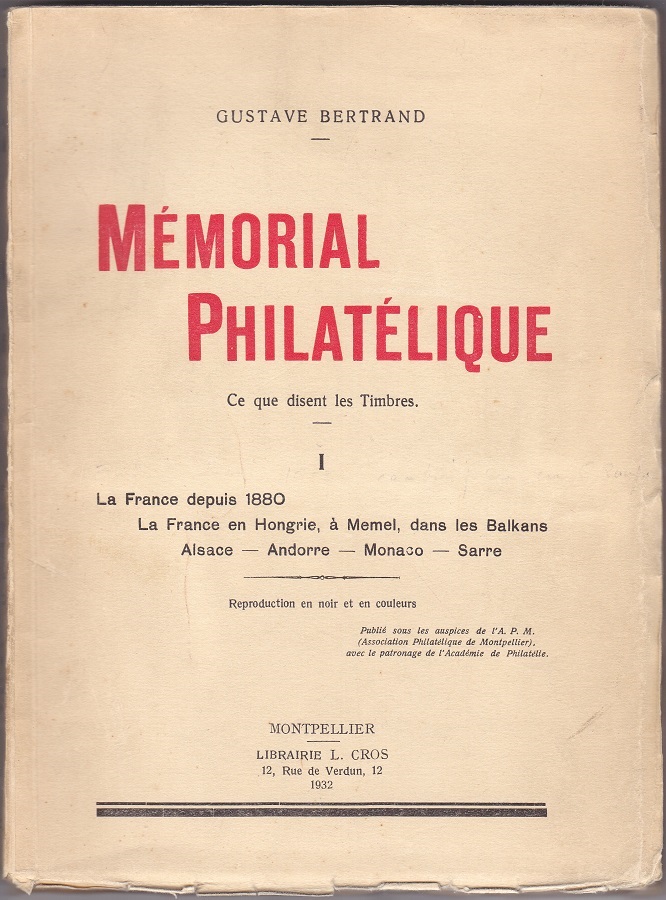 MÉMORIAL PHILATÉLIQUE I LA FRANCE DESPUIS 1880 LA FRANCE EN HONGRIE,À MEMEL, DANS LES BALKANS ALSACE - ANDORRE - MONACO - SARRE