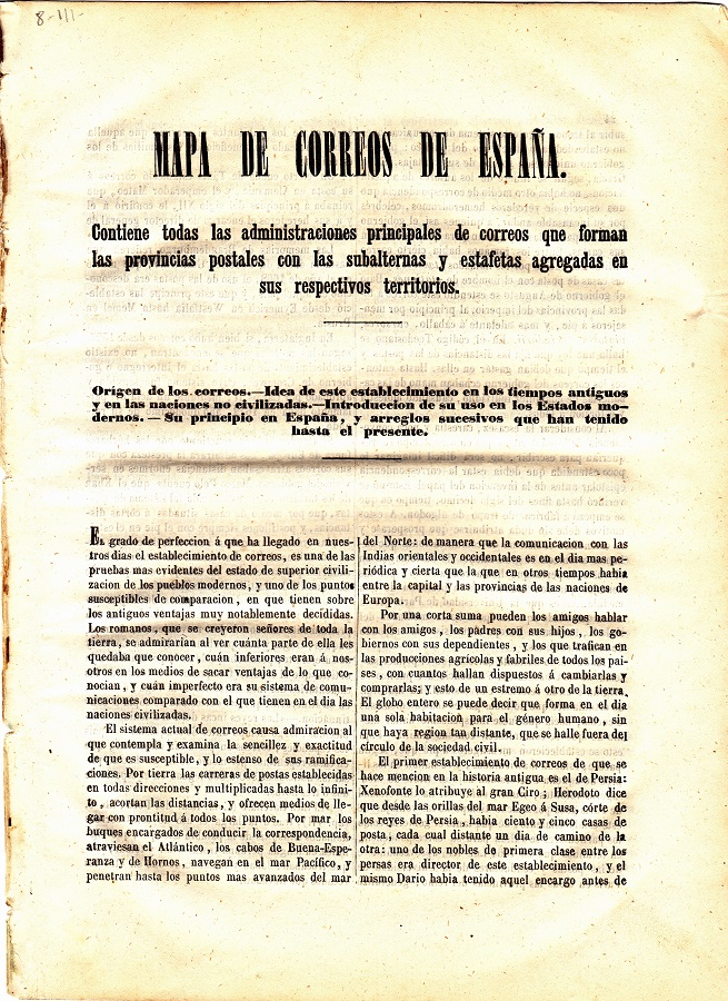 Forma parte de la obra en 2 tomos "Los Mapas Españoles" el Mapa de Correos esta en el Tomo II pág. 22 y siguientes.