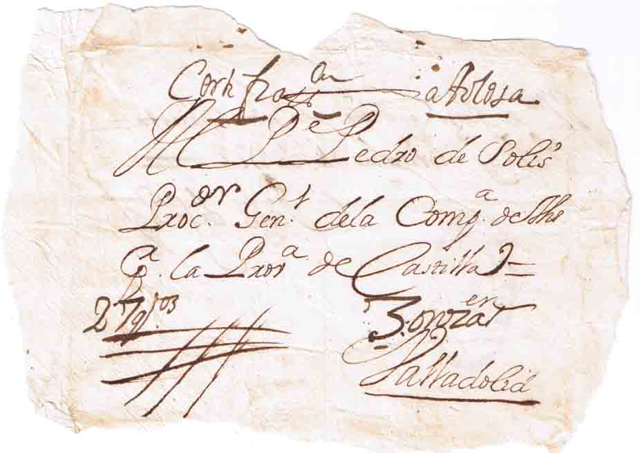 A su vez subo otra nueva e inédita marca de la Administración de Tolosa cuando ésta era Caxa en el período que va de 1717 a 1856, se trata de una certificación manuscrita que pasa por ser la primera conocida de toda España que registra al dorso el acuse de recibo de su destinatario, fechada el 14 de noviembre de 1728 y guardada entre los fondos epistolares del Archivo Histórico de Loyola de donde está tomada la imagen. Además es la primera referencia de porte y peso manuscritas en una cubierta de la tarifa para correo certificado que se venía aplicando desde 1717.