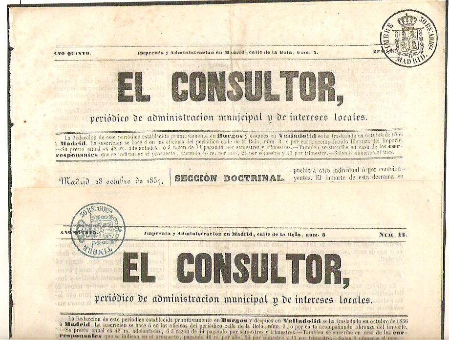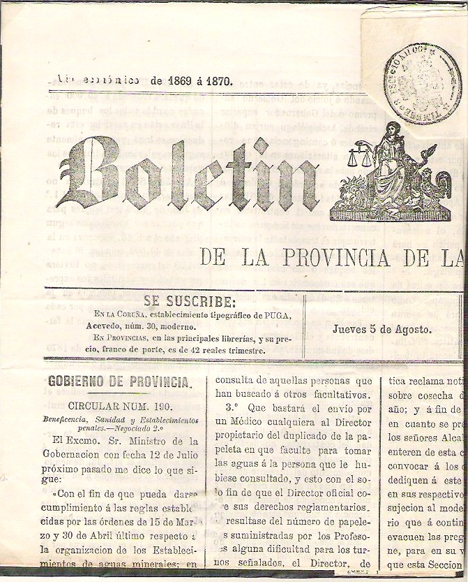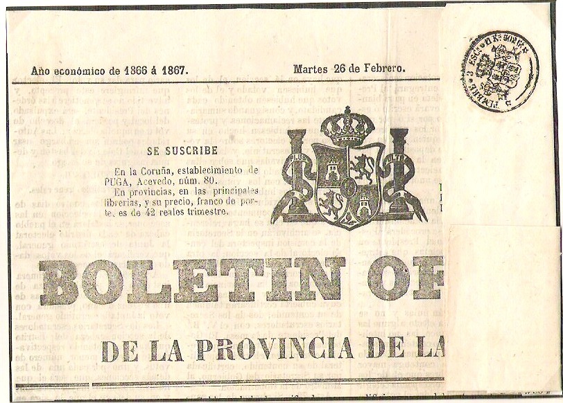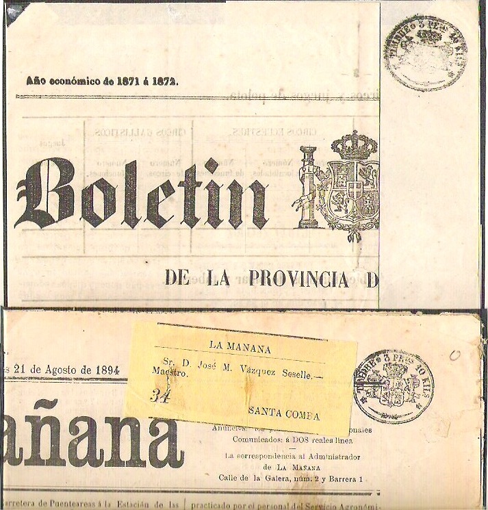 Al principio los timbres solo eran utilizados por los boletines oficiales,despues al popularirza las suscripciones a periodicos se fueron extendiendo.Periodico "La Mañana"e la Coruña Y boletin de la provincia.