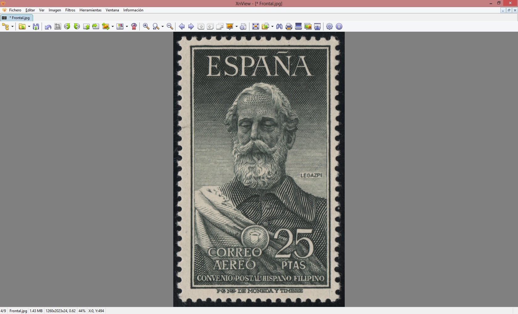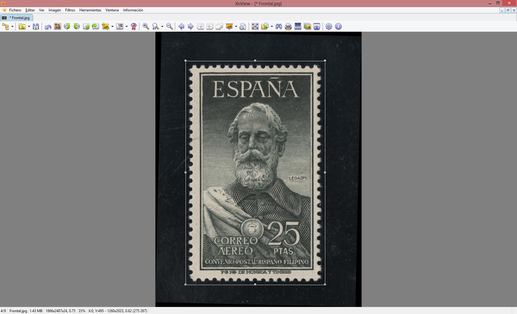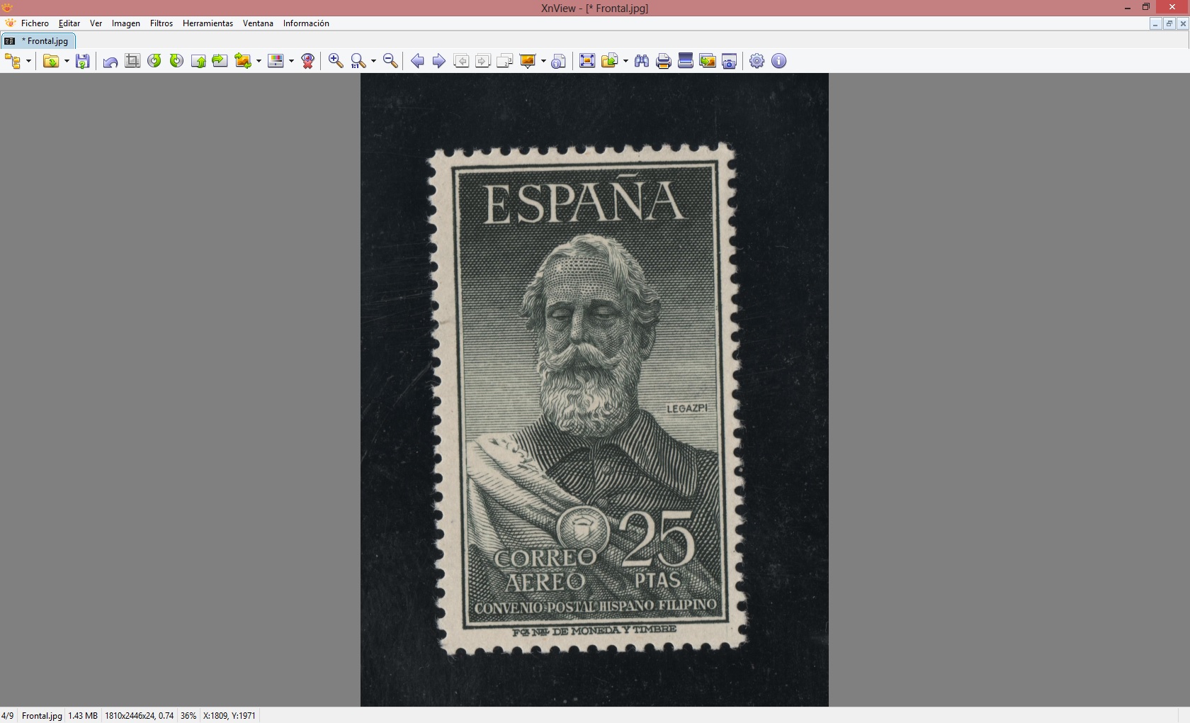 Es el paso más rápido y sencillo. Vemos que el sello tiene mucho margen. En la mayoría de programas del escanes nos da la opción de poder hacer el recorte, pero yo le dejo siempre un trozo para que al rotar el sello siempre tenga un buen márgen de maniobra. De todos modos, yo lo explicaré para hacerlo con este programa.