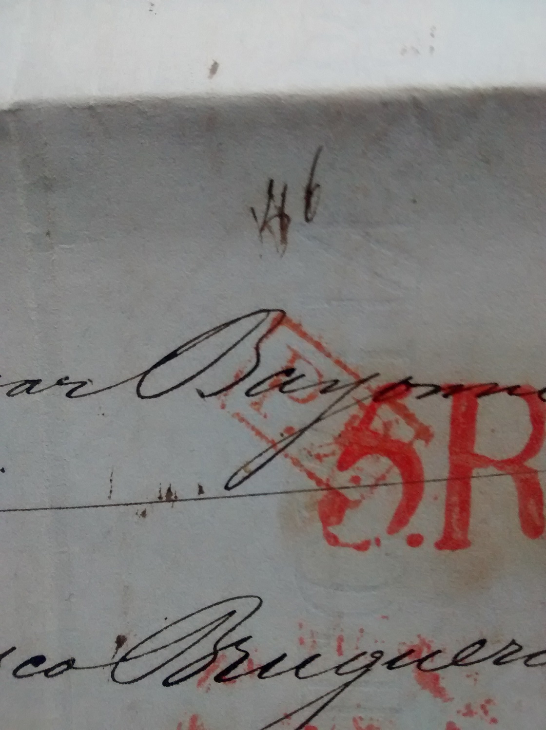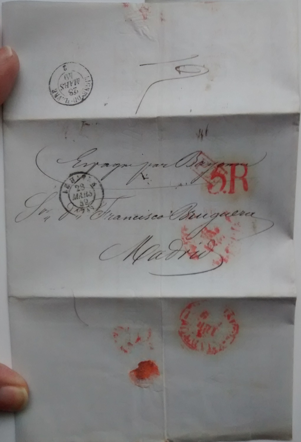 Del Puerto de Le Havre a Madrid, con marca PP en rojo y porteo 5Reales
