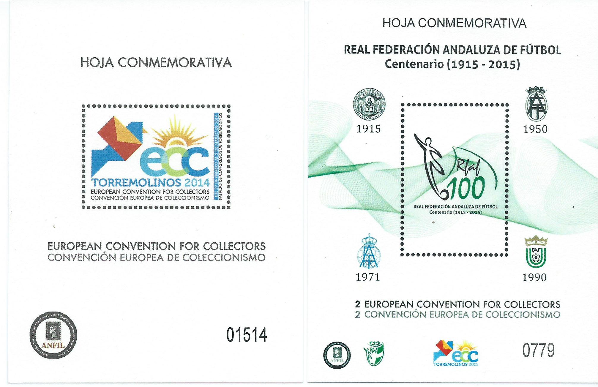2 H.B. Conmemorativas. 2014, 2015.